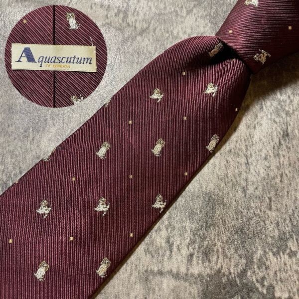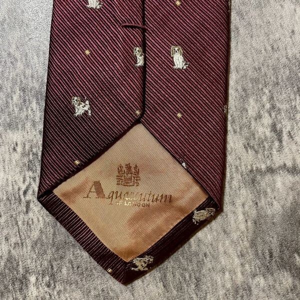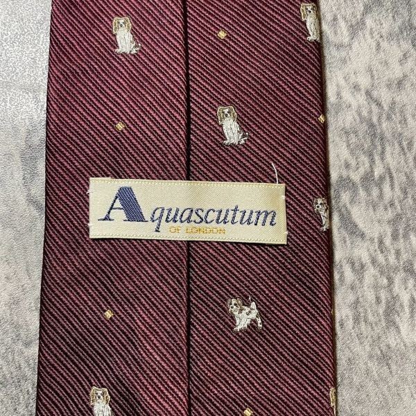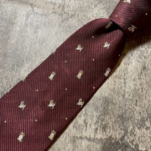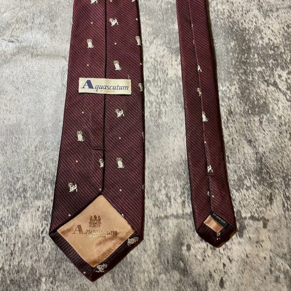 [KN281] Aquascutum ワインレッド 犬柄  シルク ネクタイ