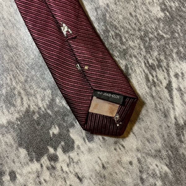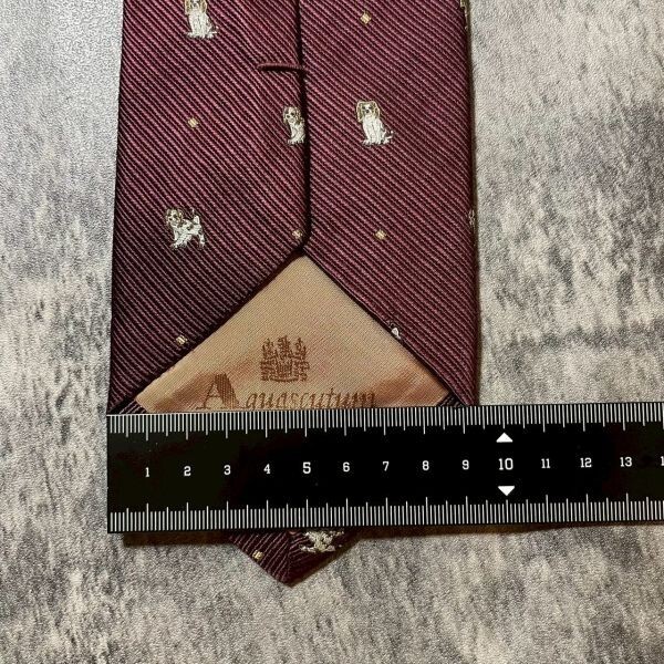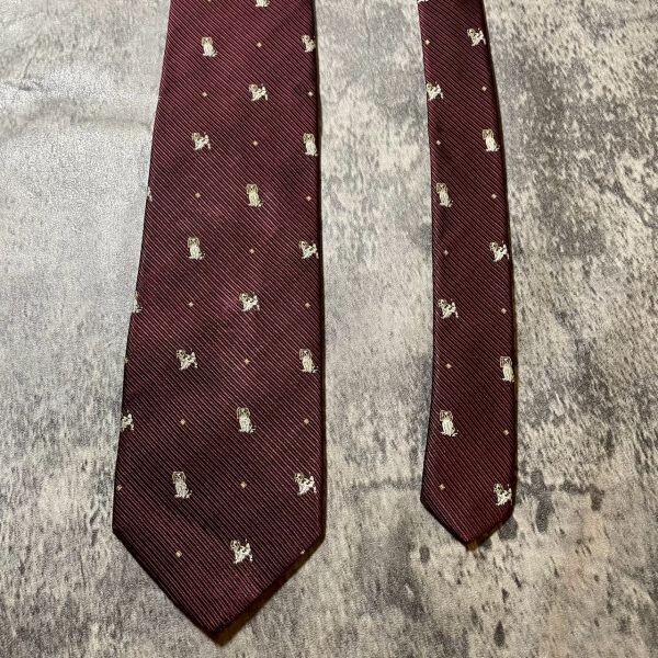 [KN281] Aquascutum ワインレッド 犬柄 シルク ネクタイ