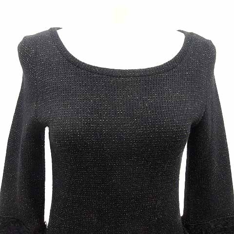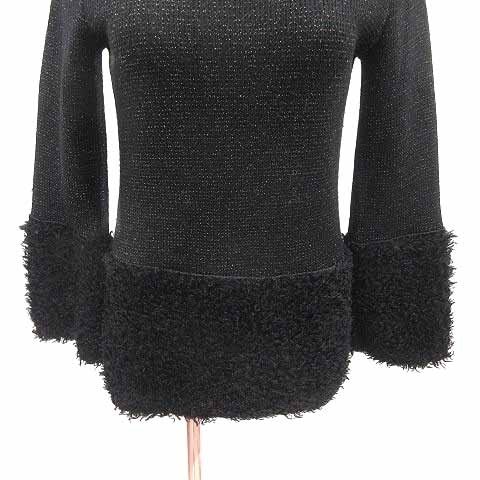 ミッシュマッシュ MISCH MASCH チュニック ニット 切替 シャギー 長袖 38 M 黒 ブラック /YK レディース