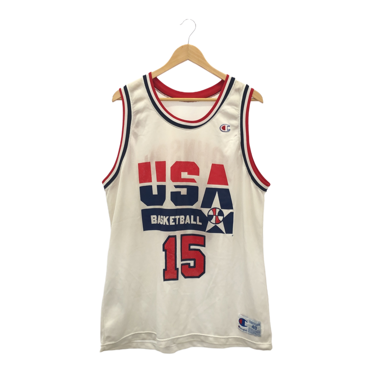 | STAFF COMMENT | 90's Championのメッシュタンクトップです。バスケットボール、アメリカチームのメンバーのナンバリングは"15"のユニフォーム。ホワイト地にレッドとネイビーの米国カラーが印象的。使用感はありますが、コンディションはかなり良いです。様々なファッションスタイルにお使いいただけます。 |