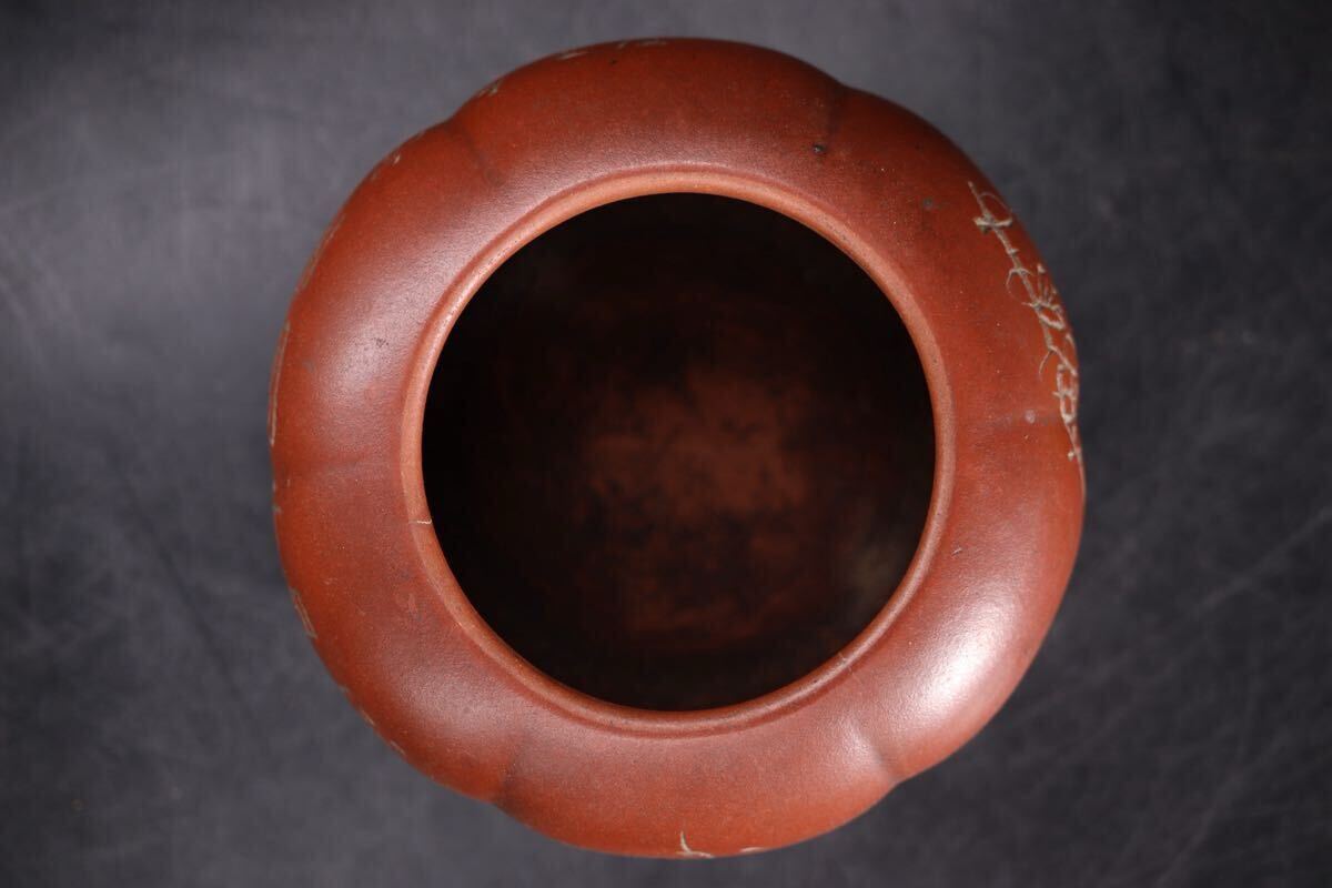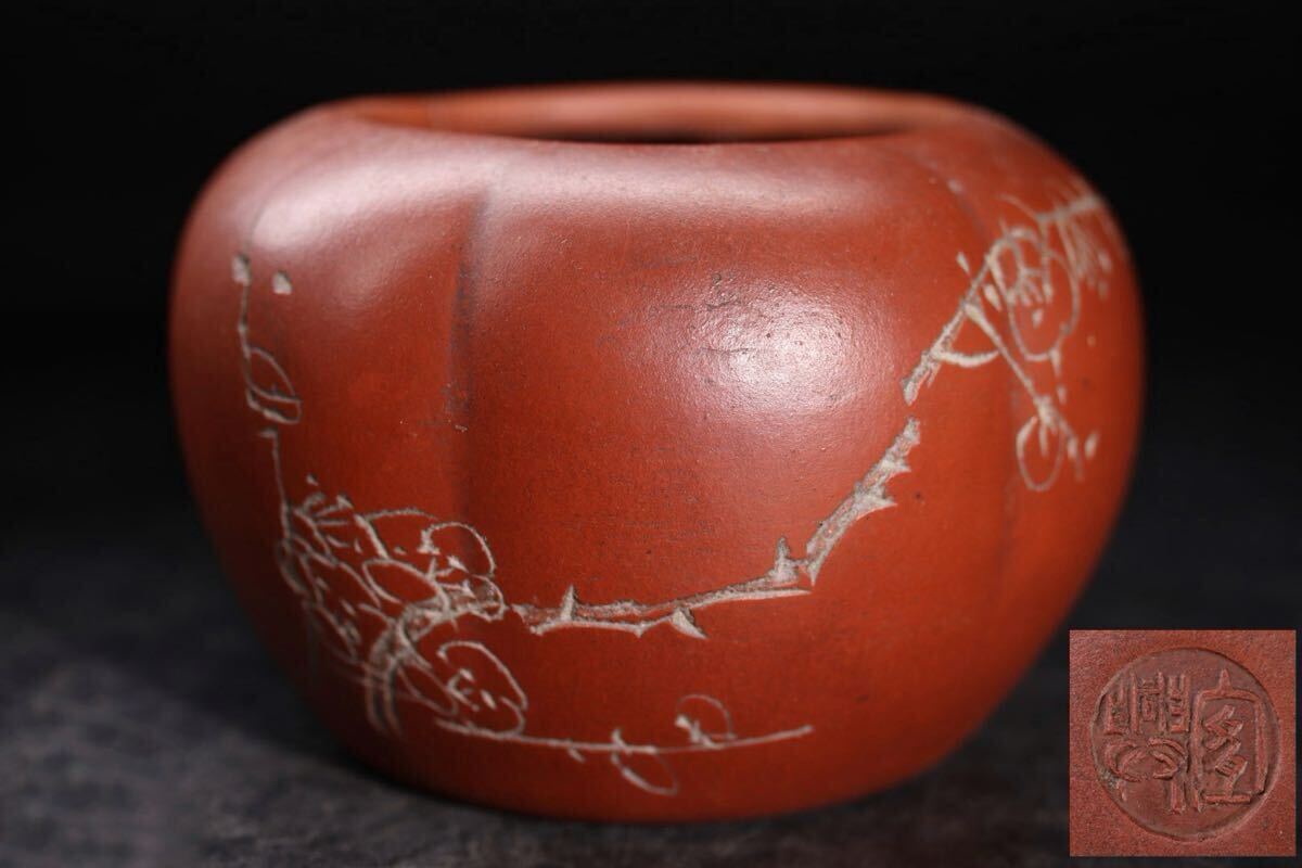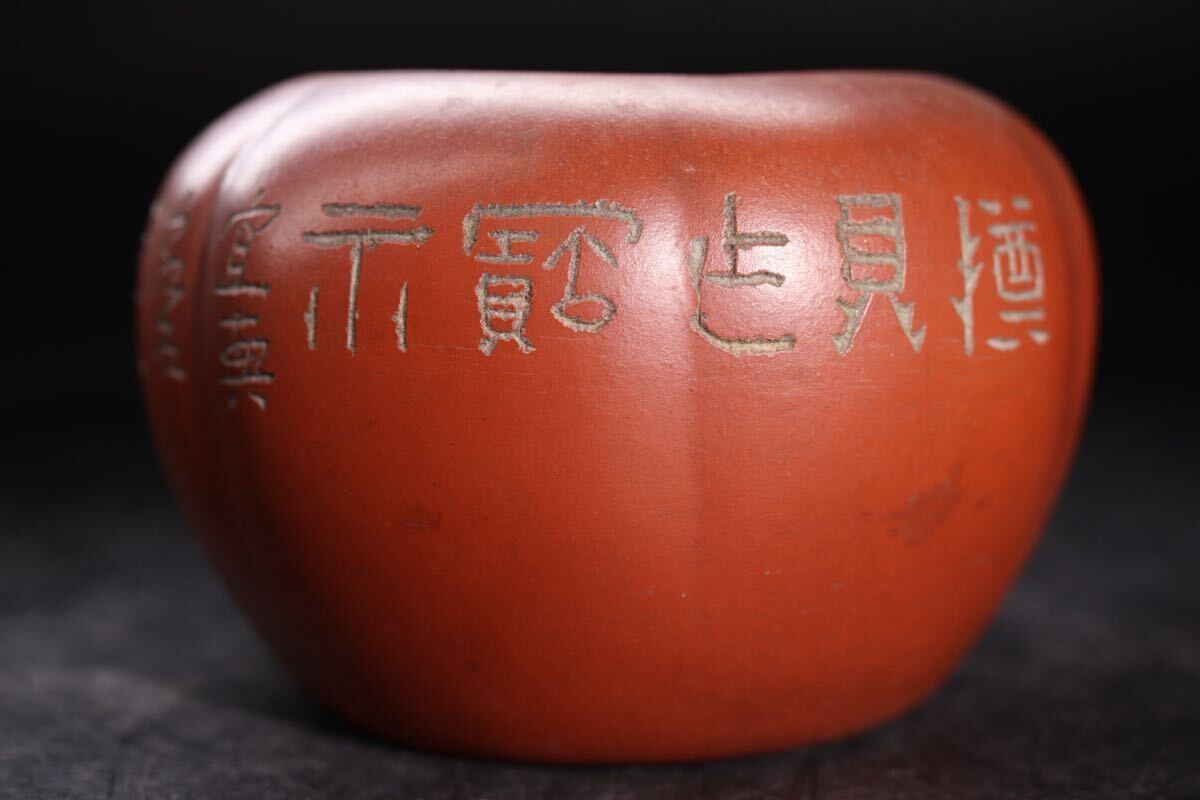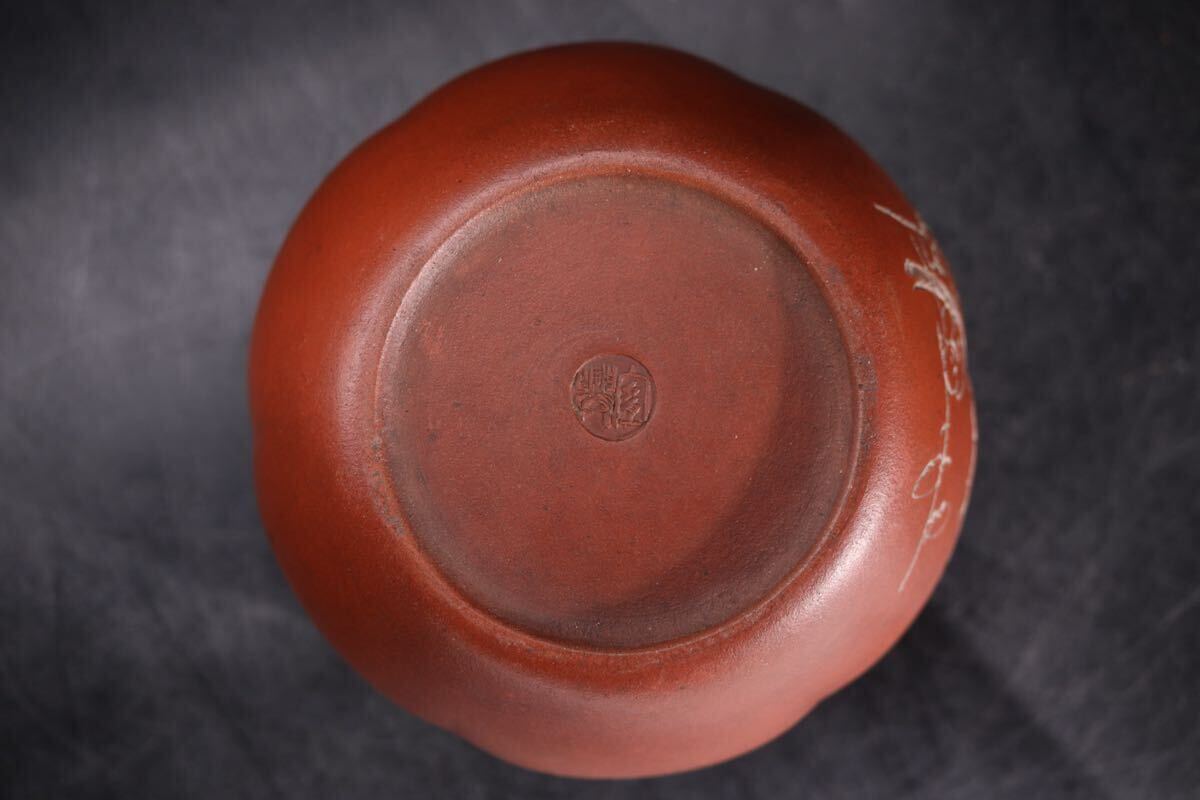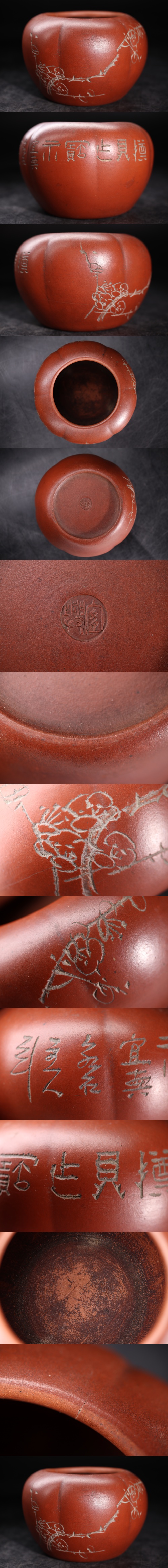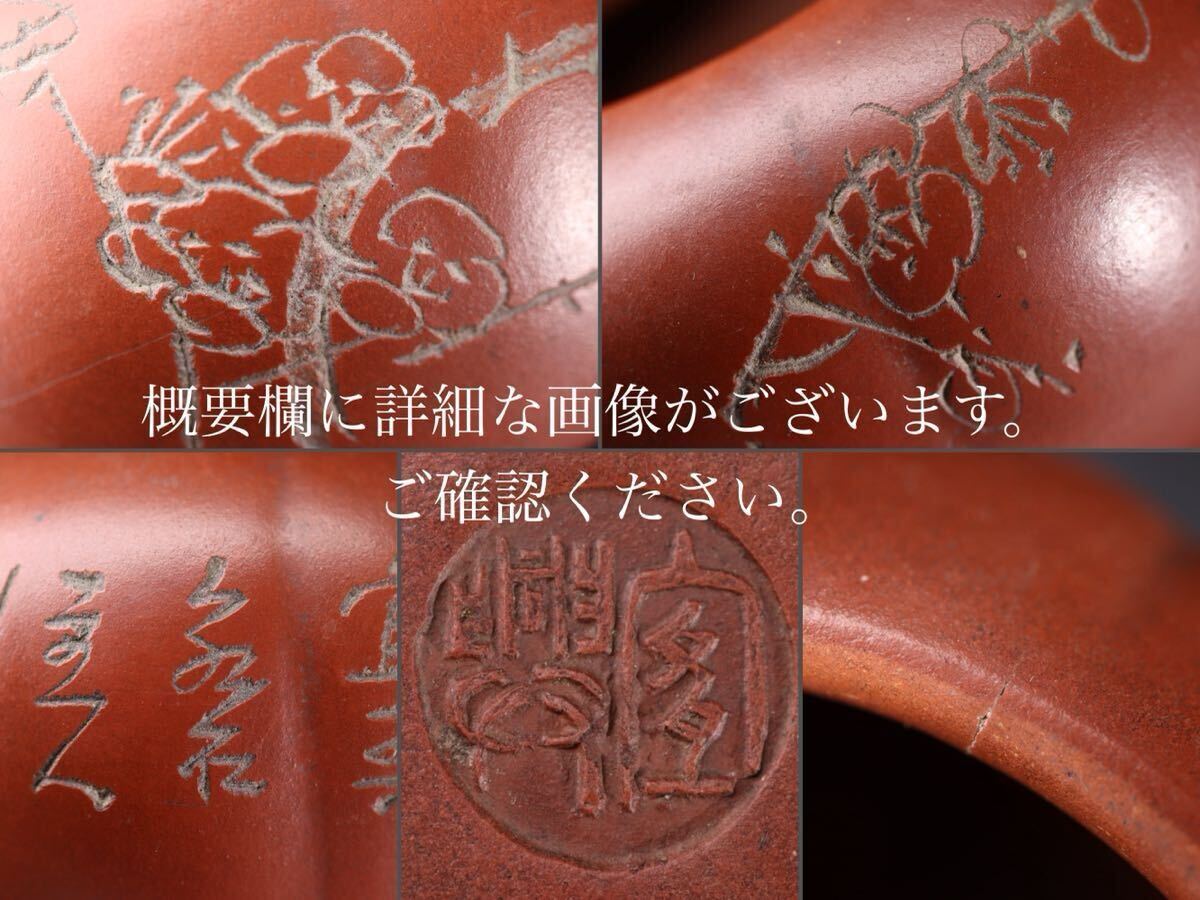 | 時代 宜興 底款 朱泥 梅花 ・ 漢詩彫 小壺 / 中国美術 壺 建水 煎茶道具 紫砂 紫泥 宜興紫砂 .G2305 |