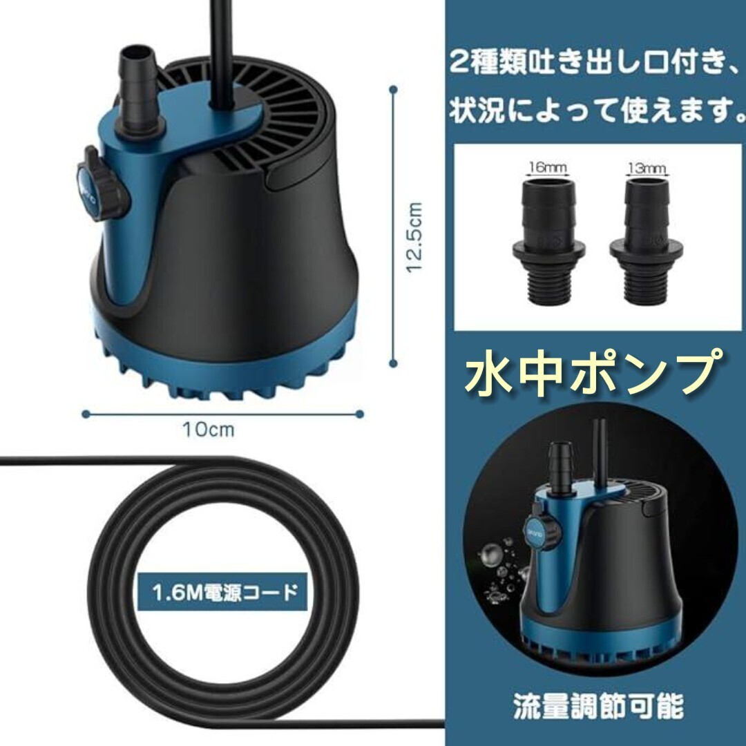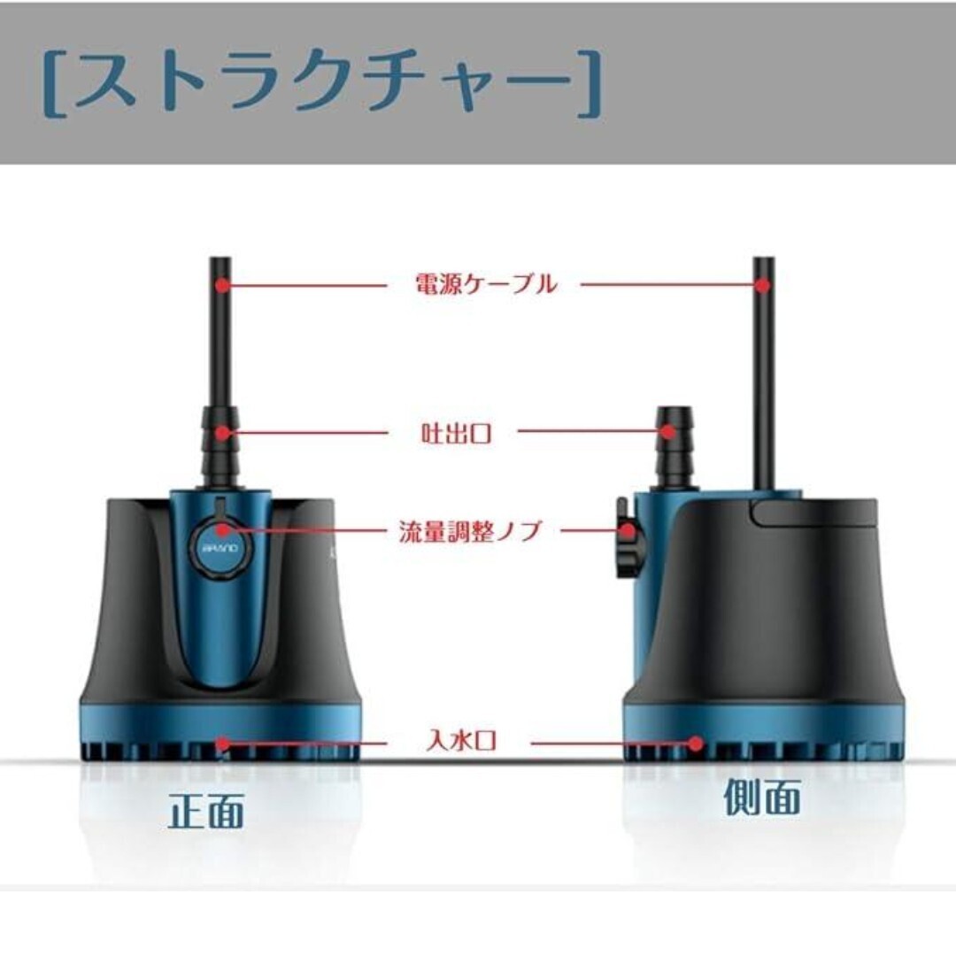 広い適用範囲:水槽や噴水、魚の池、庭の散水など、さまざまな場面で活躍。低水位でも使用可能で、2.5cmの水位から排水できます。
