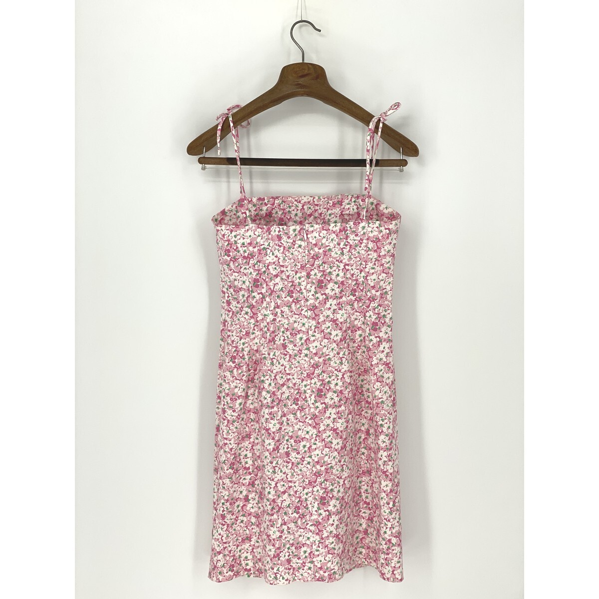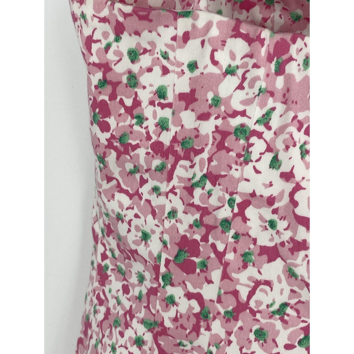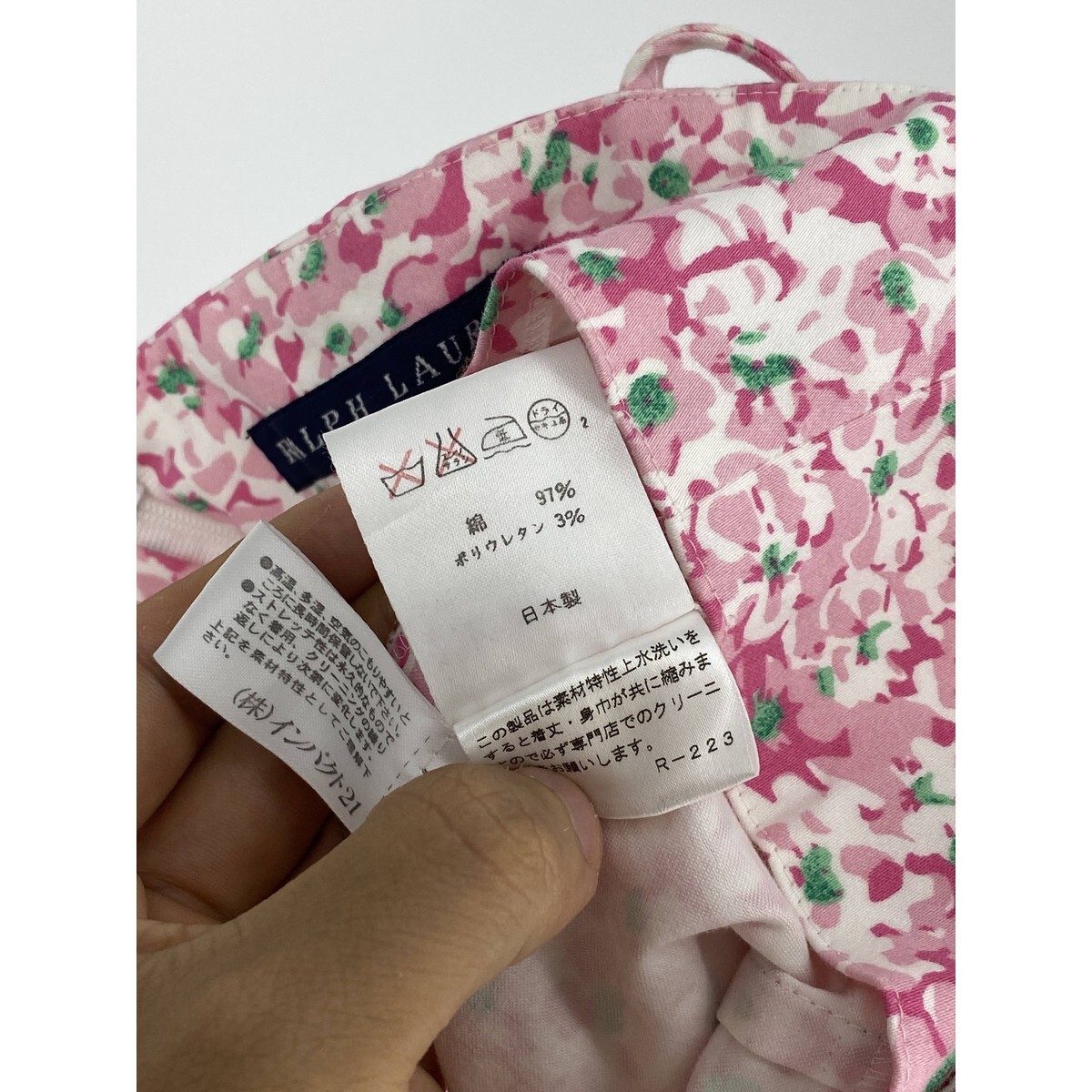 B0068/極美品 RALPH LAUREN ラルフローレン コットン 花柄 総柄 ストレッチ 肩紐 ノースリーブ 膝丈 ワンピース 7 M ピンク レディース