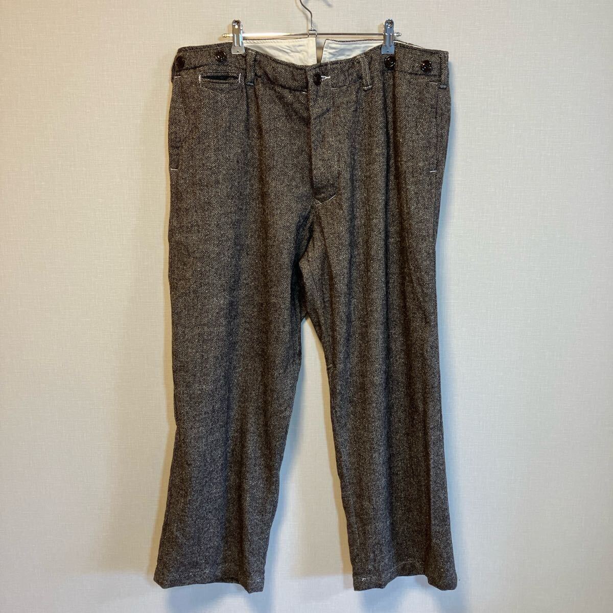 サイズ : 36 (ウエスト幅約52cm、ヒップ幅約63cm、股上約32cm、股下約74cm、わたり幅約36cm、裾幅約27cm)