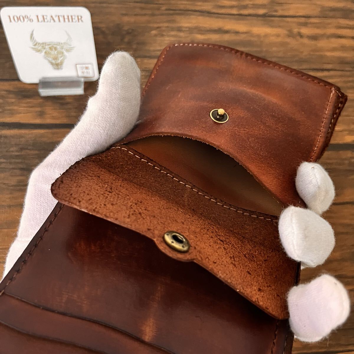 アルゼンチンの牛革に、ストーンウォッシュ加工を施した三つ折り財布です。