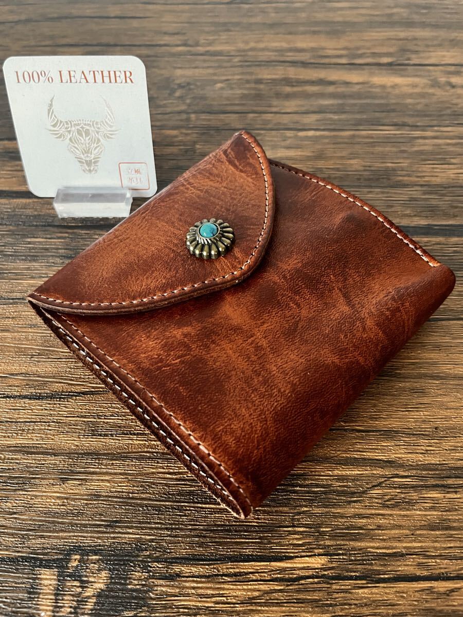 白銅コンチョの中央にはネイティブアメリカン風のターコイズを使用しています。