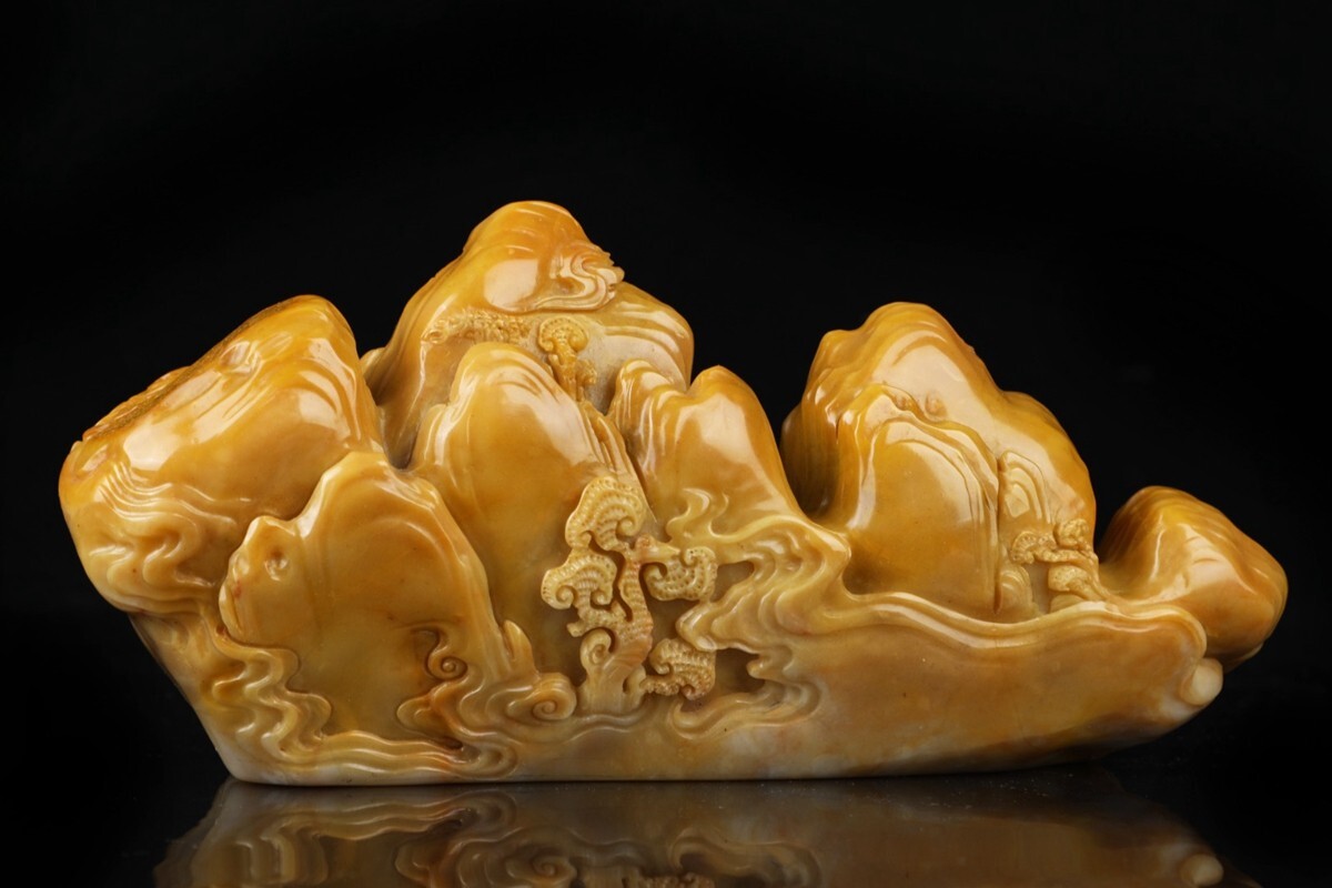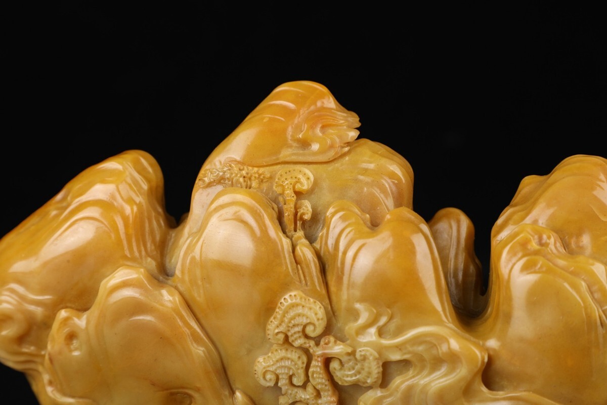 「清時代 老寿山石 田黄石彫り 祥龍吐瑞 山子」極細工 擺件 古賞物 中国古美術 旧蔵出