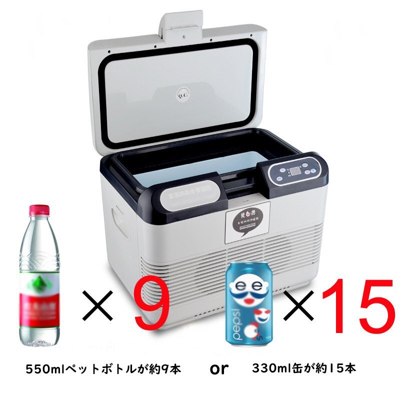 【15L大容量】550mlのペットボトルは縦に入ります。従来の車載冷蔵庫より便利性が一層改善されました。330ml缶が約15本/550mlペットボトルが縦に約9本入ります。ショルダーストラップ付きで持ち運びも便利です。