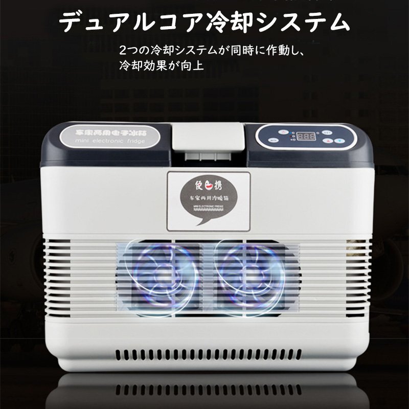 車載冷蔵庫 15L ポータブル冷蔵庫 -10℃~+65℃調整 持ち運べる小型冷蔵庫 クーラーボックス 家庭用車載用 静音 DC12V/24V 110V 白&灰色