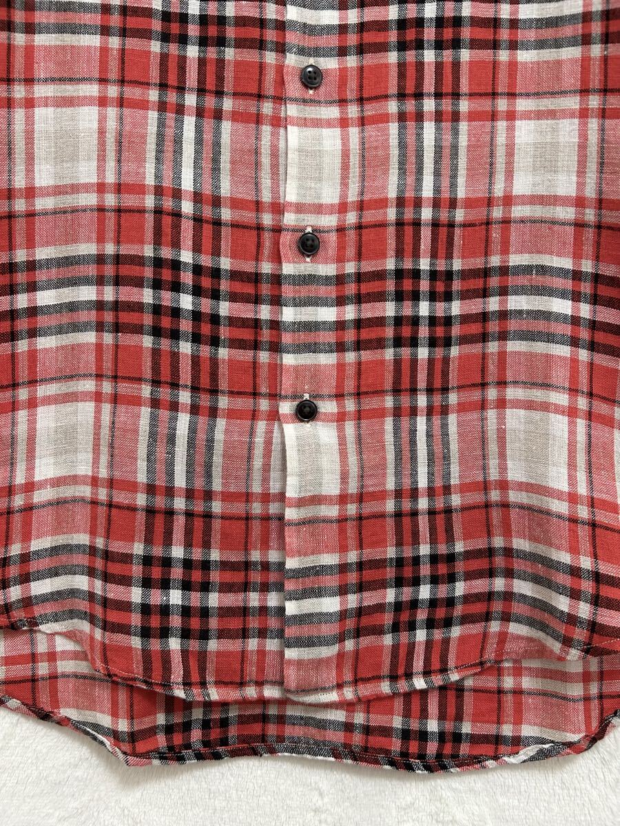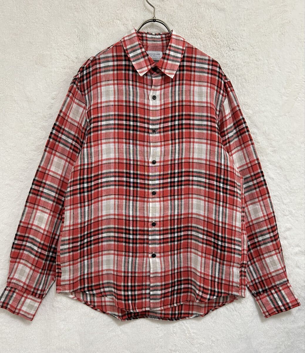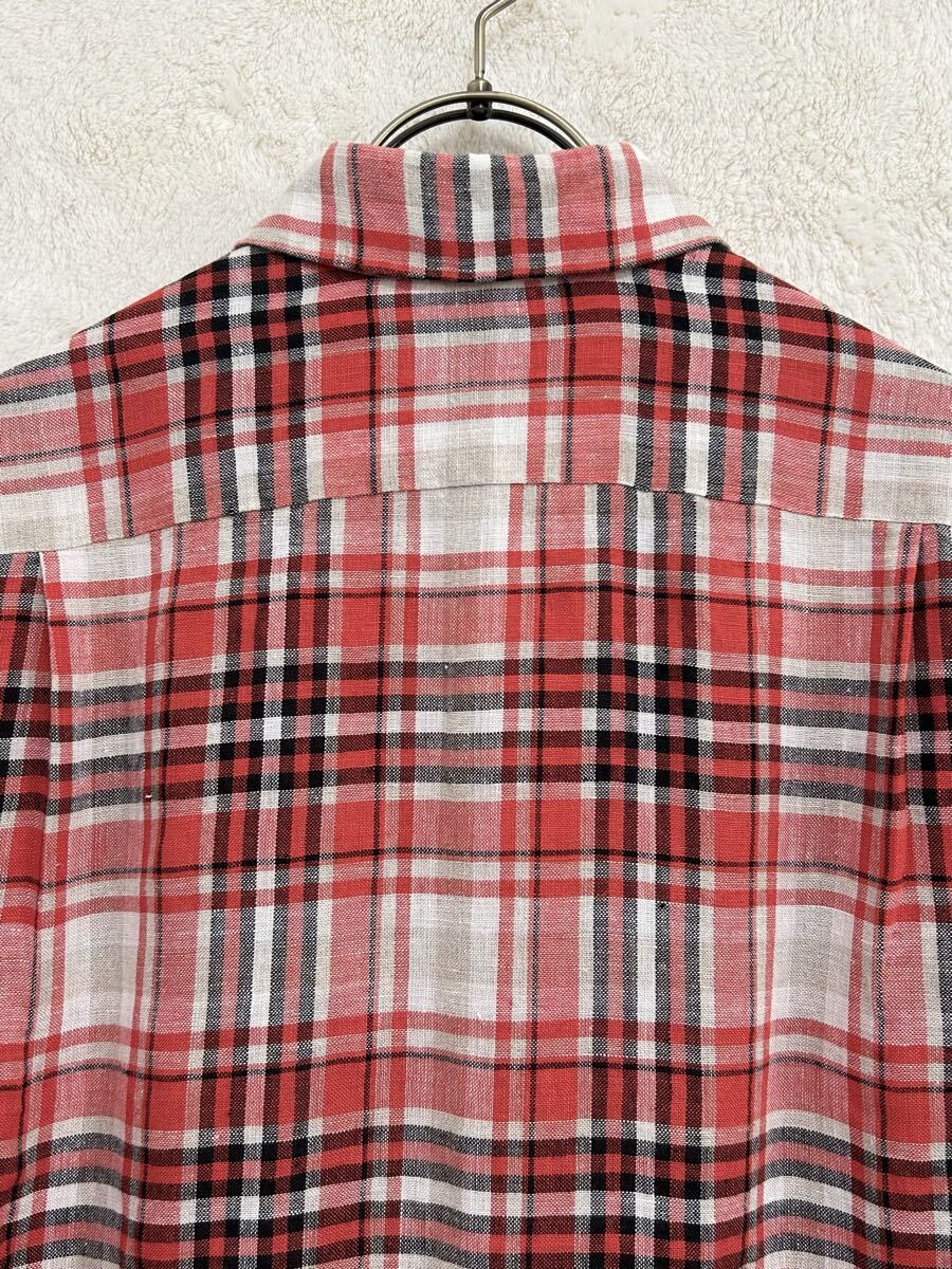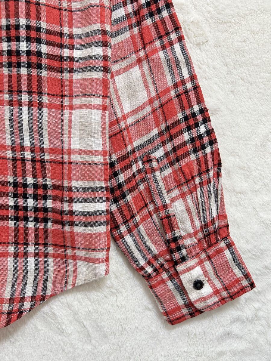 【新品同様】春夏物 トゥモローランド TOMORROW LAND メンズ リネン100% 長袖シャツ Mサイズ ベージュ×朱赤、黒 チェック柄 クリーニング済み