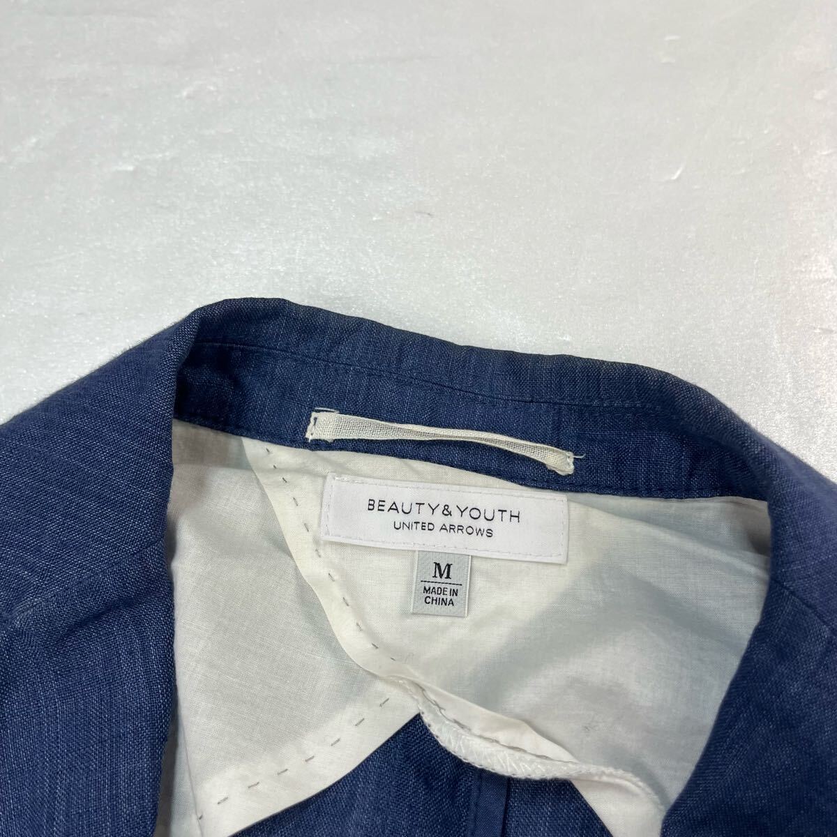 (TK-0811) BEAUTY&YOUTH UNITED ARROWS ユナイテッドアローズ リネン テーラード ジャケット ブレザー ネイビー 定番 カジュアル M