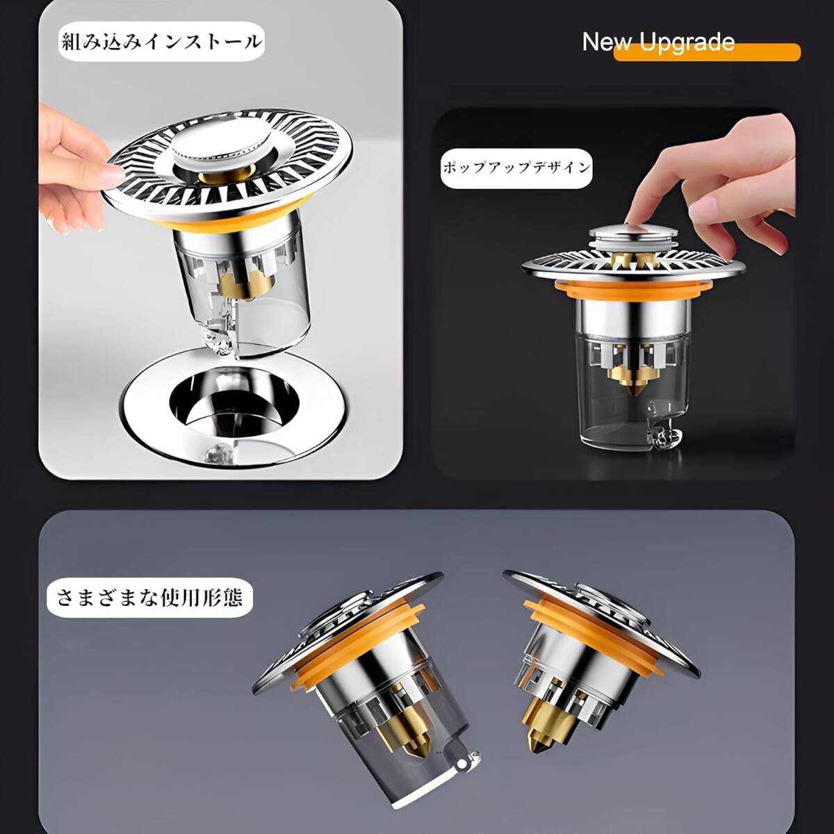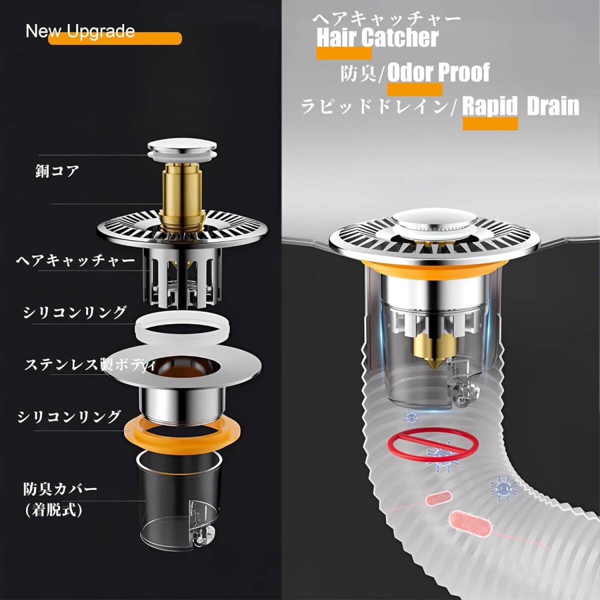 • 【オーバーフロー防止】大きなゴムパッドがついていて、ゴムと金属の表面が密着しているので、水漏れを防ぐことができます。髪の毛詰まり・水アカ・悪臭・虫沸き・掃除・これ一つで全部解決!
