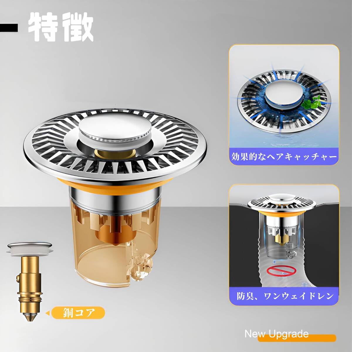 洗面台ポップアップ 洗面台 ゴミ受け 純銅製 ヘアキャッチャー 排水溝 ゴミ受け 排水口 洗面台 ネット ゴキブリ対策 ステンレス 蓋 28~40mm対応 目詰まり防止 掃除しやすい