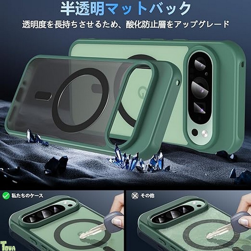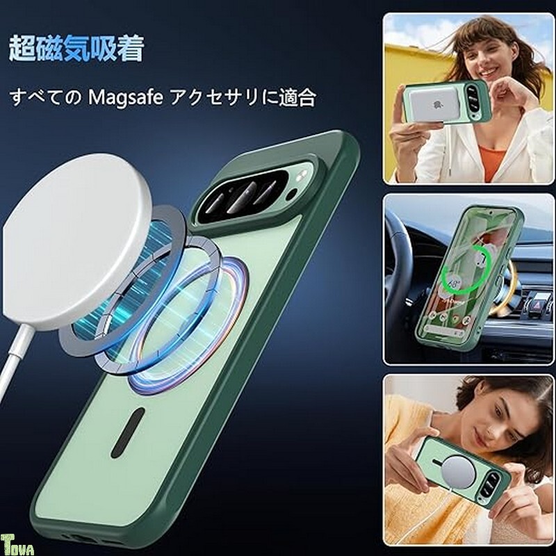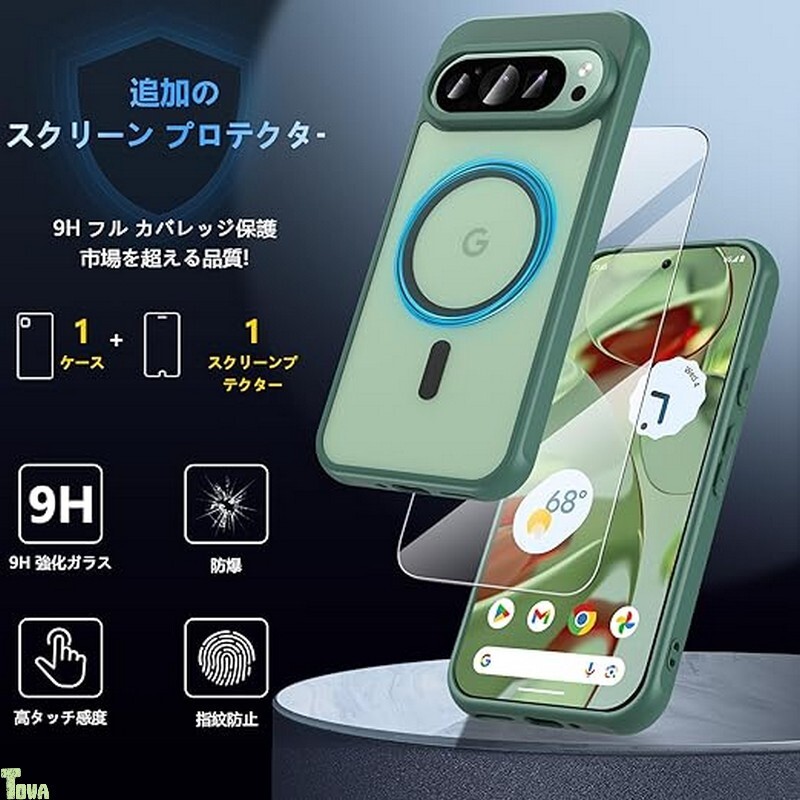 グリーン 画面保護フィルム付き MagSafe 対応 米軍MIL規格 グーグル ピクセル 9 / 9プロ Google Pixel 9 / 9 Pro ケース カバー バンパー