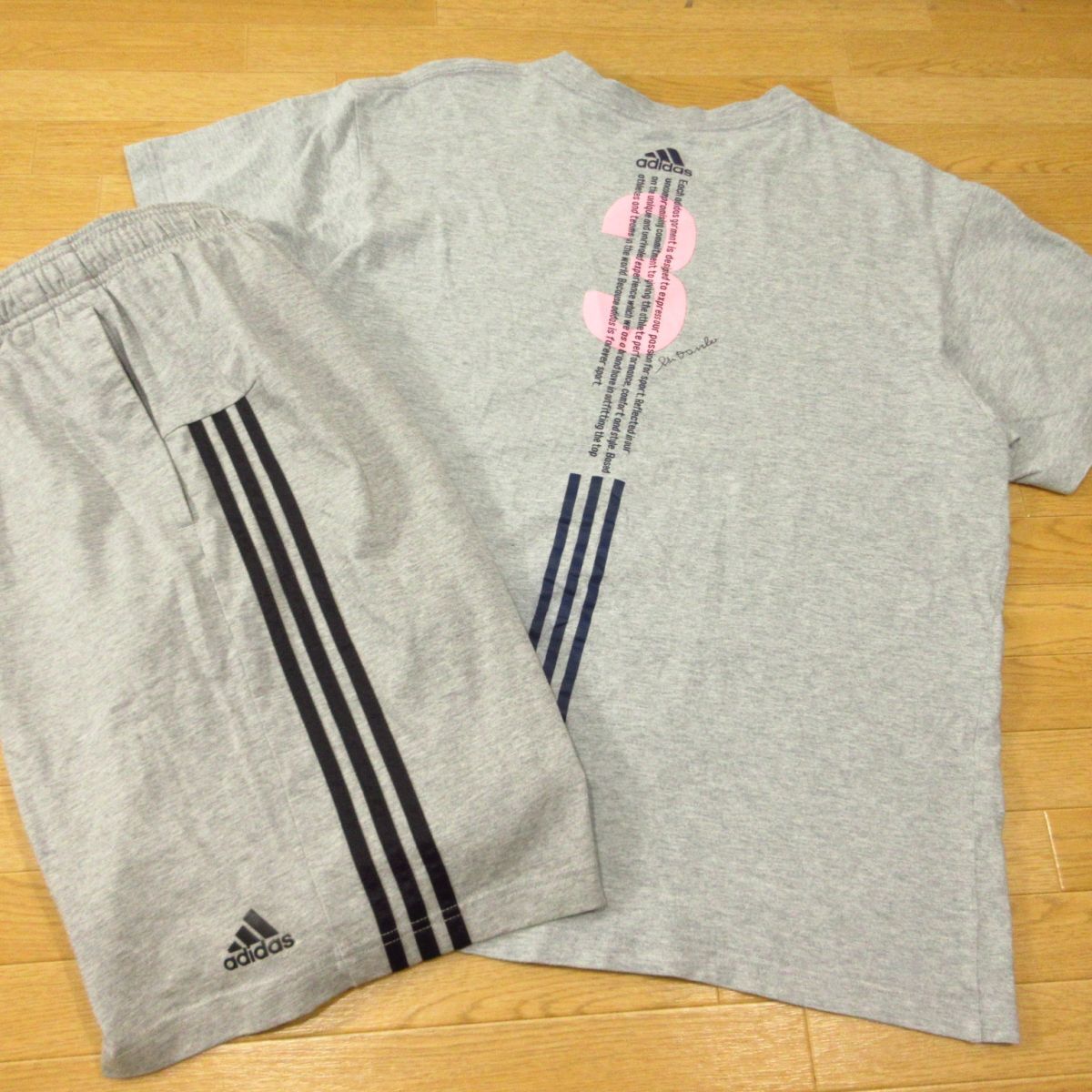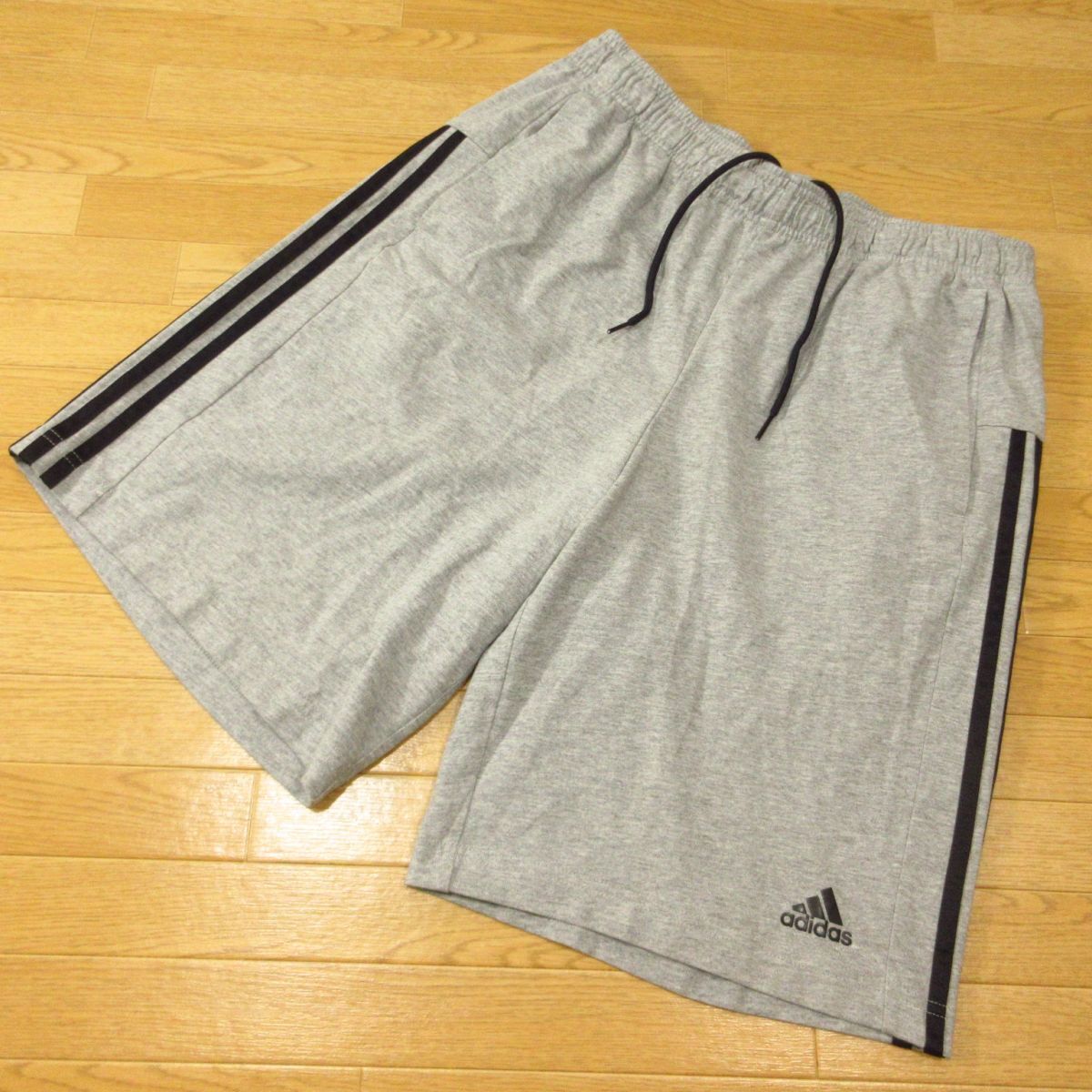 ◎良品!adidas アディダス 2XL XXL 上下セット 半袖 Tシャツ&スウェット ハーフパンツ コ ットン ルームウェア メンズ グレー◆BA3127