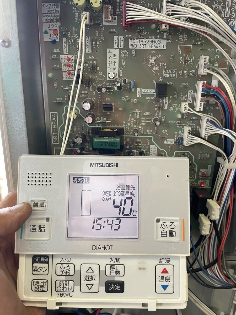 簡易的に電源に接続しふろ循環ポンプの電気的な動作を確認しました。 |
