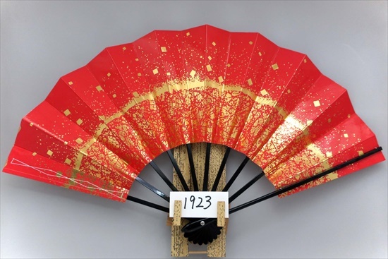 舞扇子 A1923 金もみ柄 高級光沢紙赤 【箱なし】