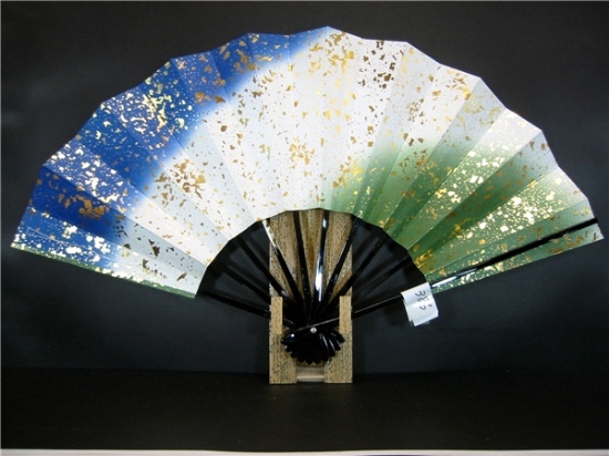 舞扇子 A386 青・草両妻ぼかし 金箔小石 【箱なし】