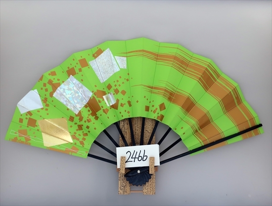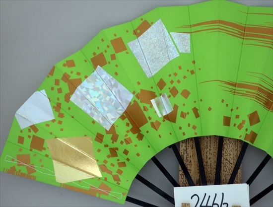 舞扇子 A2466 金泥かすみ 金・銀・ホロ小石 若草地 【箱なし】