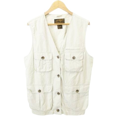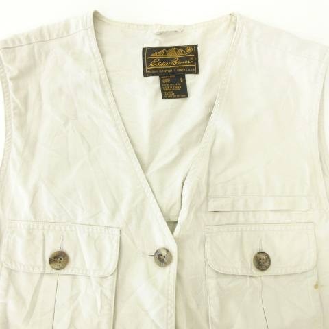 エディーバウアー EDDIE BAUER ベスト ボタン Vネック 無地 薄手 Sサイズ アイボリー ■MET1 メンズ