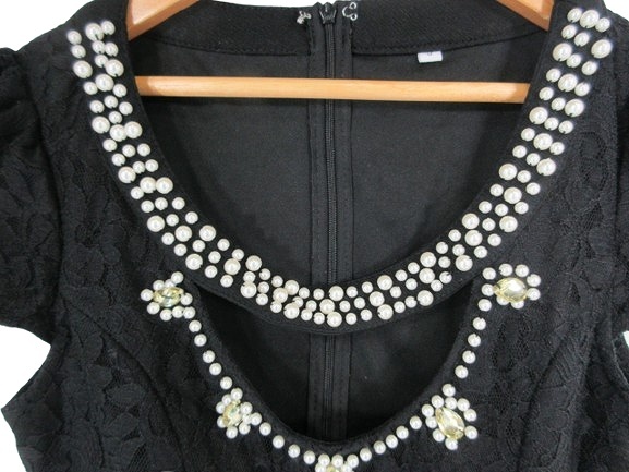 マイドレス mydres ドレス ワンピース フレンチスリーブ ミニ丈 レース 刺繍 サイズS 黒 QQQ レディース