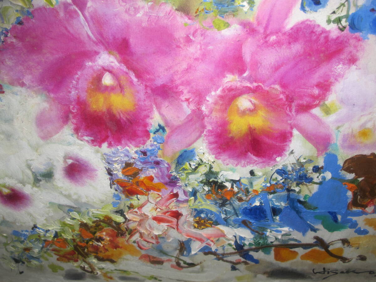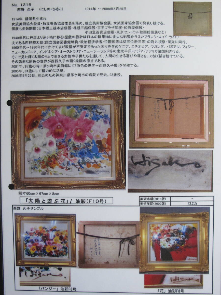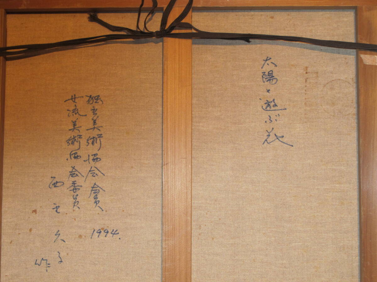 【真作】西野 久子(1914年 - 2008年女流美術協会委員・独立美術協会委員)作 太陽と遊ぶ花 F10 油絵