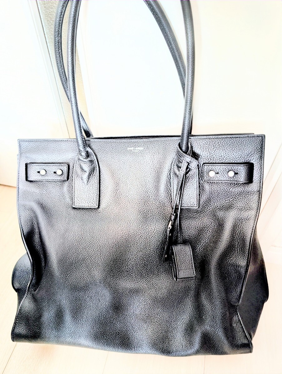 情報 : ボディは、柔らかいレザーですで型崩れ・シワ・くたっと感がございますが、気になるスレ・汚れはございません。底部角付近にスレはほとんどございません、目立つダメージはございません。金具部分は薄スレ・メッキ剥げが少しございますが、綺麗なほうです。#SaintLaurent #Saint #Laurent #HandBag #Lether