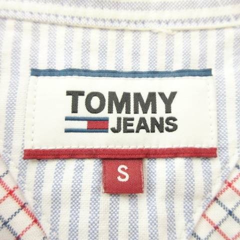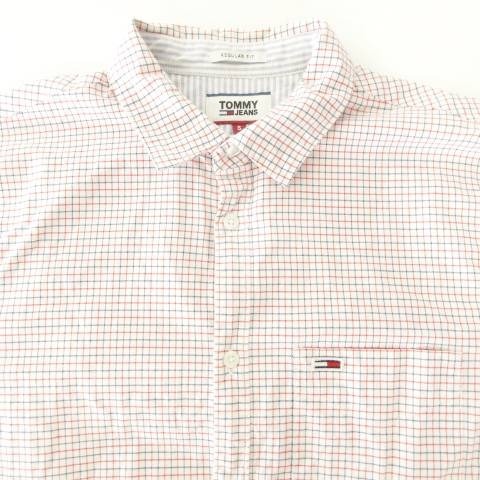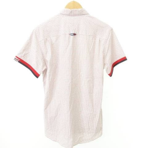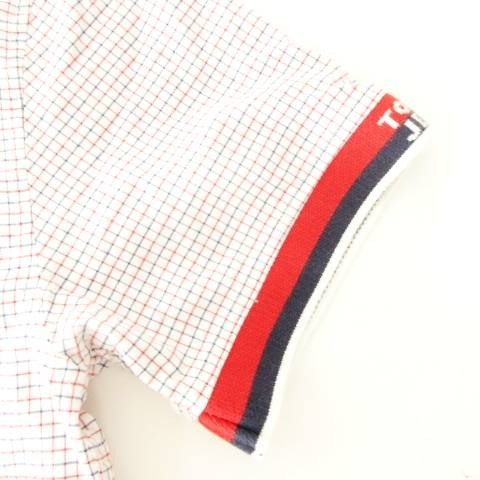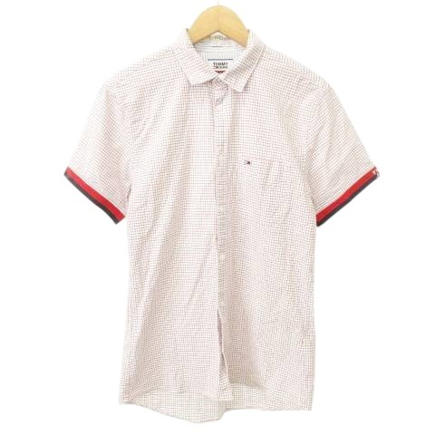 トミーヒルフィガー TOMMY HILFIGER シャツ 半袖 チェック ライン ロゴ ラウンド 薄手 Sサイズ 白 ホワイト ■MET1 メンズ