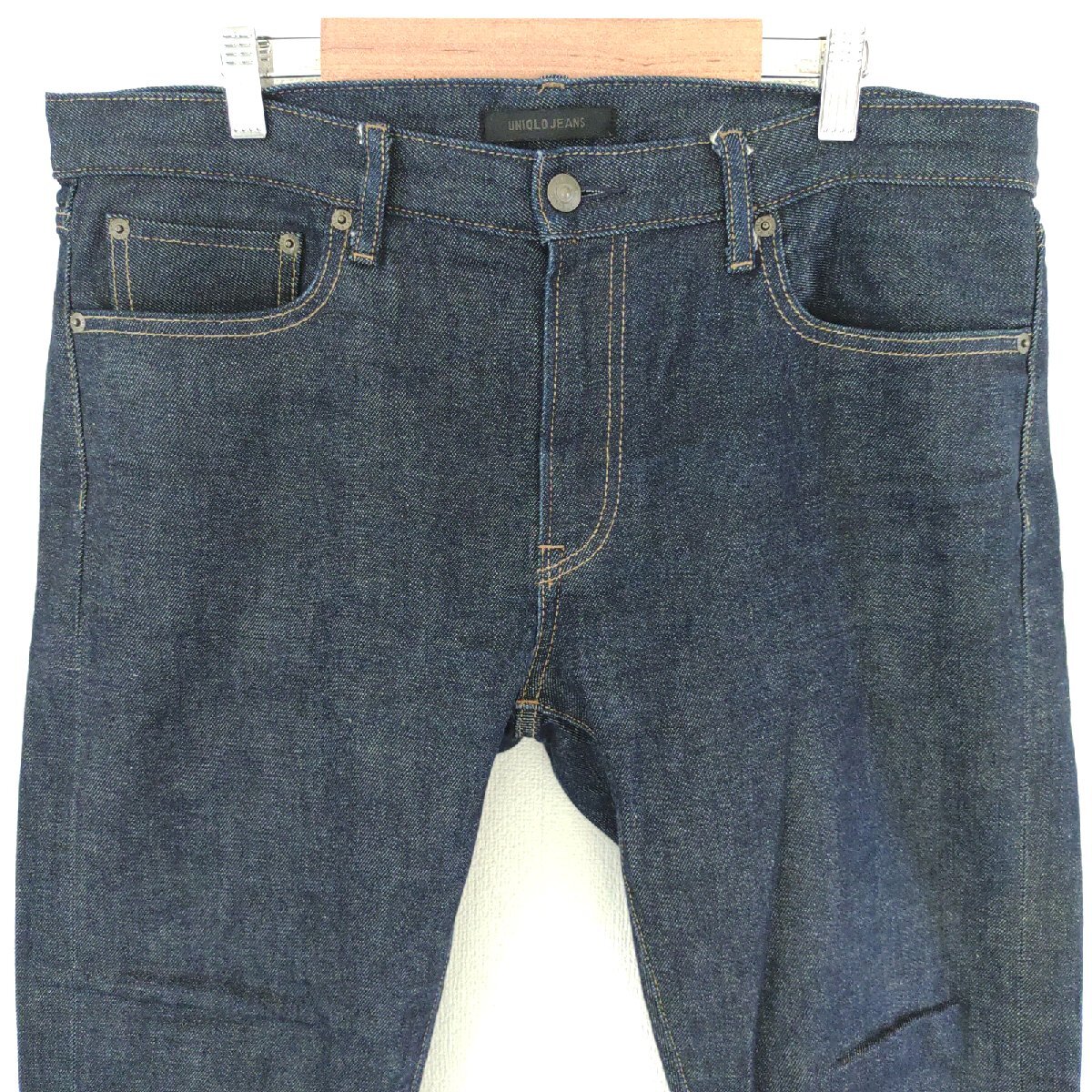 (^w^)b UNIQLO JEANS ユニクロ ジップフライ ストレッチ デニム パンツ ジーンズ Gパン ズボン ボトムス セルビッチ 赤耳 紺 W36 O14819DD