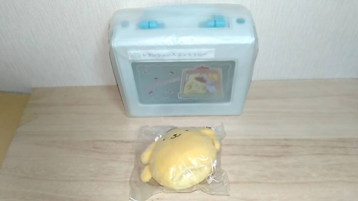 [m16255y z] ポムポムプリン トランクケース(ミントブルー)、指人形  サンリオ 当たりくじ