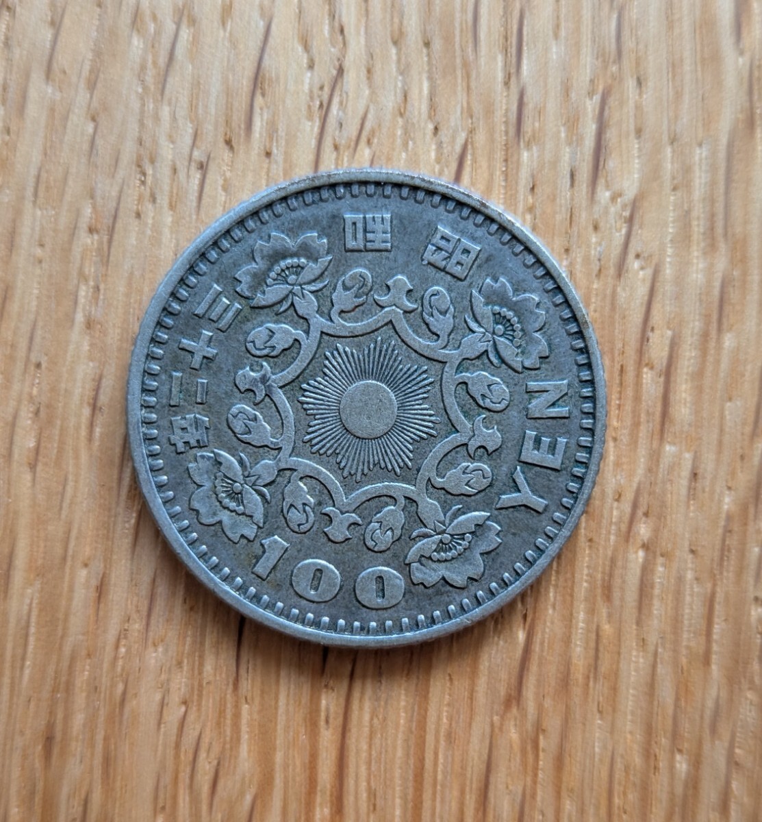 鳳凰100円銀貨は、1957年(昭和32)と1958年(昭和33)に発行された銀貨です。銀の含有率は60%(銅30%、亜鉛10%)で、重さは4.8グラム、直径は22.6ミリメートルです。