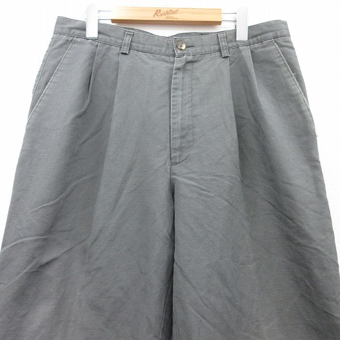 【商品名】 W34★古着 パンツ メンズ リネン グレー系