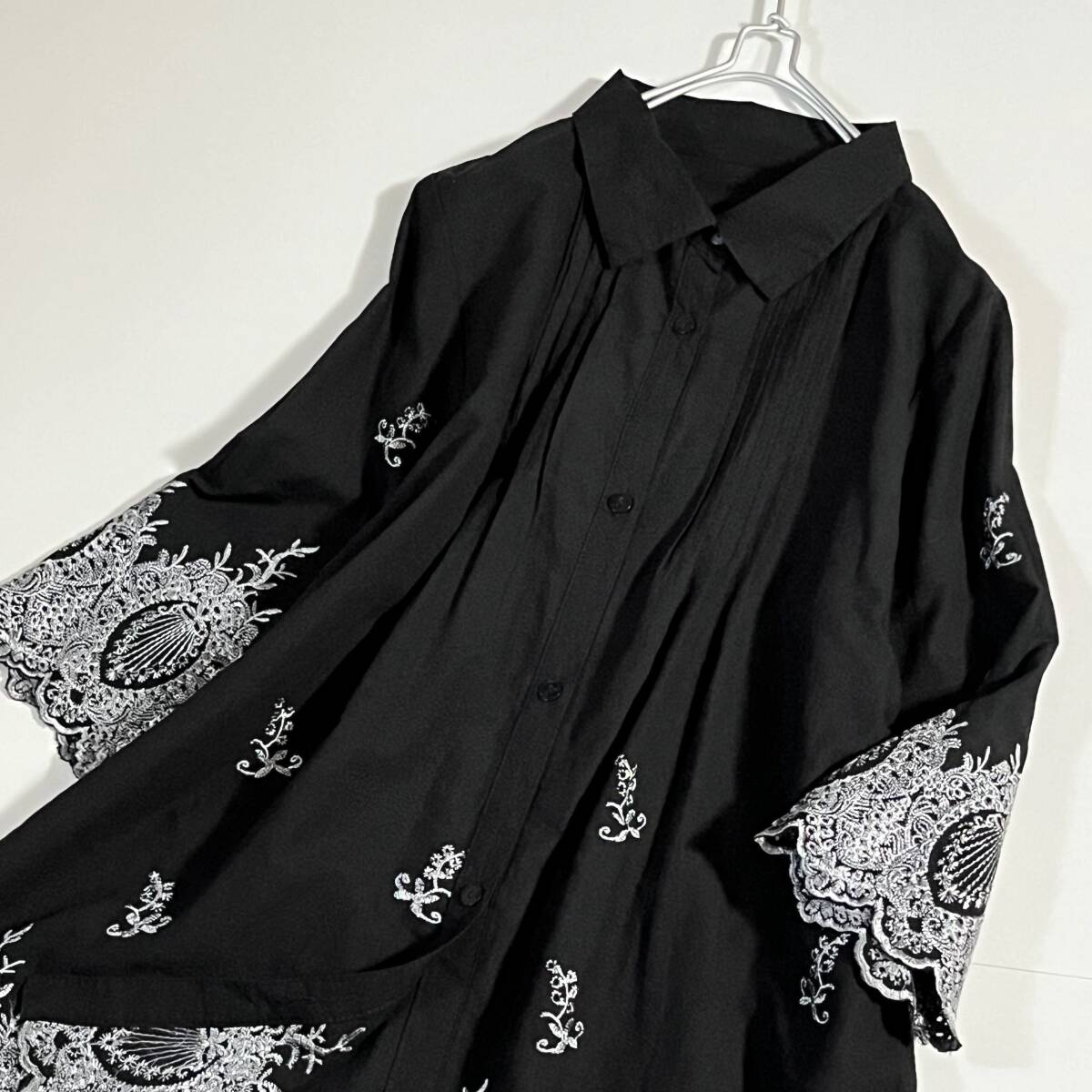 PEARLY PIO ゆったりサイズ // カットワークレース刺しゅう 黒 ロングブラウス 1