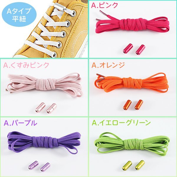 ☆結ばない靴紐 平紐タイプ ※ご購入されましたらオーダーフォームに【カラー】をご連絡ください。 【カラー(平紐)】 ・A.ピンク ・A.くすみピンク ・A.オレンジ ・A.パープル ・A.イエローグリーン ・A.ターコイズ ・A.ブルー ・A.インディゴ ・A.ブラック ・A.ホワイト 在庫切れ ・A.グレー 【商品名】 結ばない靴紐 平紐タイプ 【商品説明】 靴紐が解けて結びなおす必要がありません。 カプセルロックをくるくる回して簡単に装着可能。紐が解けることがありません。 お子様やご年配の方にもとてもご好評頂いております。 【カラー(平紐)】 ・A.ピンク ・A.くすみピンク ・A.オレンジ ・A.パープル ・A.イエローグリーン ・A.ターコイズ ・A.ブルー ・A.インディゴ ・A.ブラック ・A.ホワイト ・A.グレー 【内容】 1セット(両足分) ( 靴ひも 脱げない 解けない シンプル カラバリ かわいい 脱ぎ履き らくらく 簡単 ロックレース レースロック 伸縮 弾性 伸び縮み 赤 青 黄色 橙 水色 蛍光 緑 紺色 ネイビー 白 黒 灰色 ) |