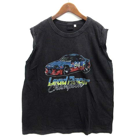 マウジー MOUSSY ノースリーブ カットソー Tシャツ フレア ヴィンテージプリント ブラック 黒 F レディース
