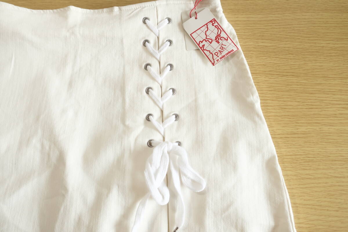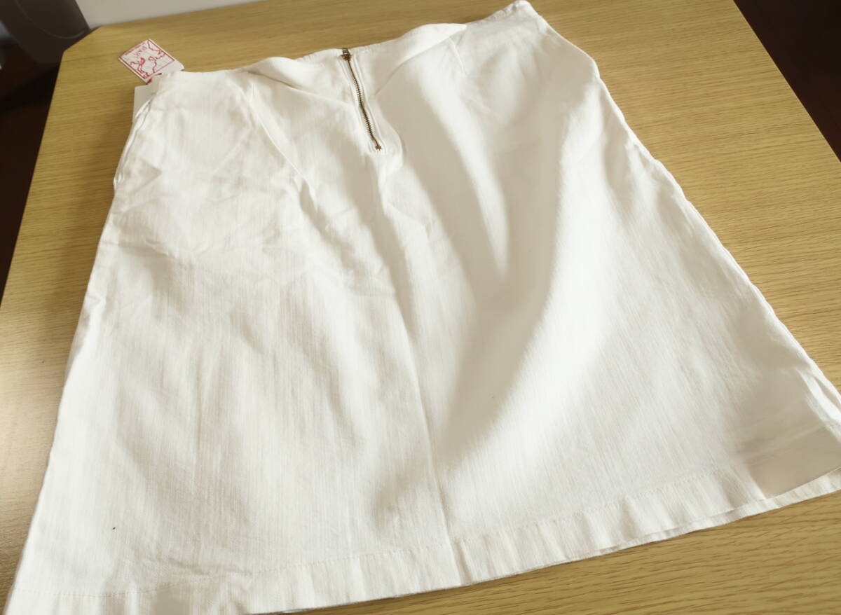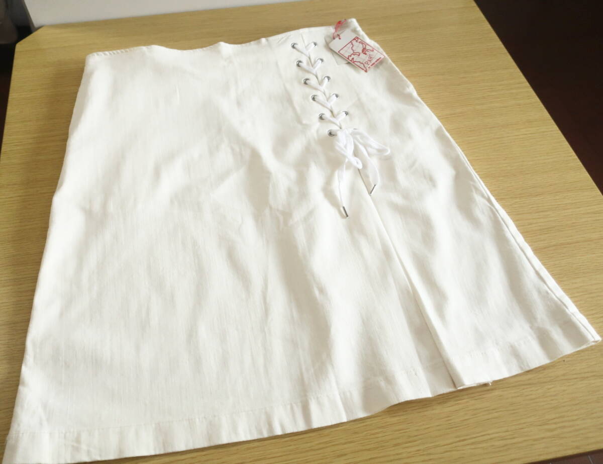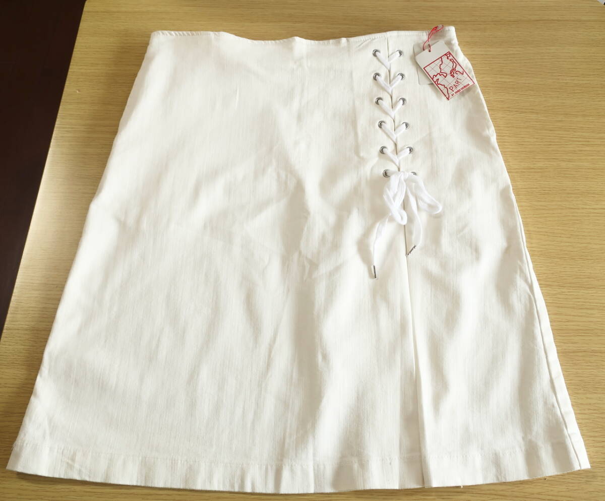 PART2★大きいサイズ・膝上スカート【W73】白色コットン サイド編み込みデザイン・未使用 BY JUNKO SHIMADA