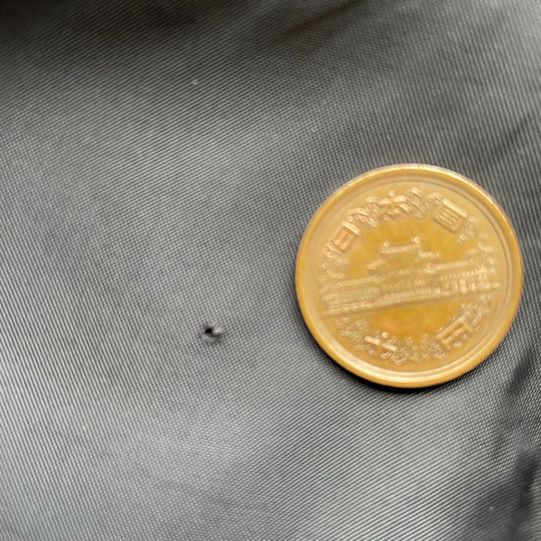 内側の裏地に10円玉画像にあるような小穴があります。