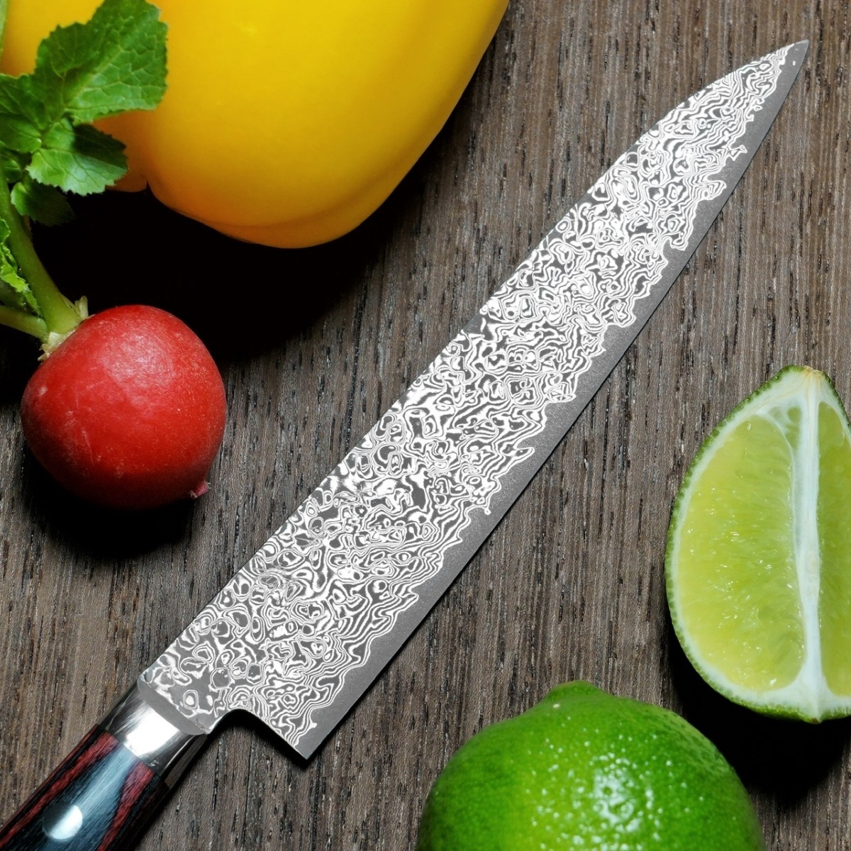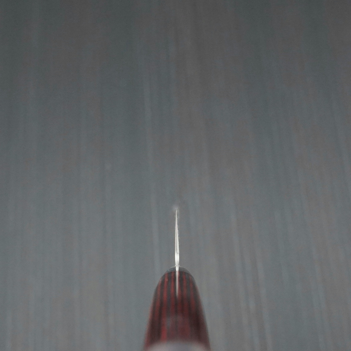 ※刃こぼれや、折れ、割れまたは刃が曲がる場合がありますので、冷凍食品には冷凍ナイフ、魚の骨やカニなどの硬いものを切る際には出刃包丁など、それぞれの用途に合わせた専用の包丁をお使いください。たとえ薄い冷凍肉や冷凍した魚のすり身、または小さい骨であっても、刃を痛めますのでご使用はおやめください。