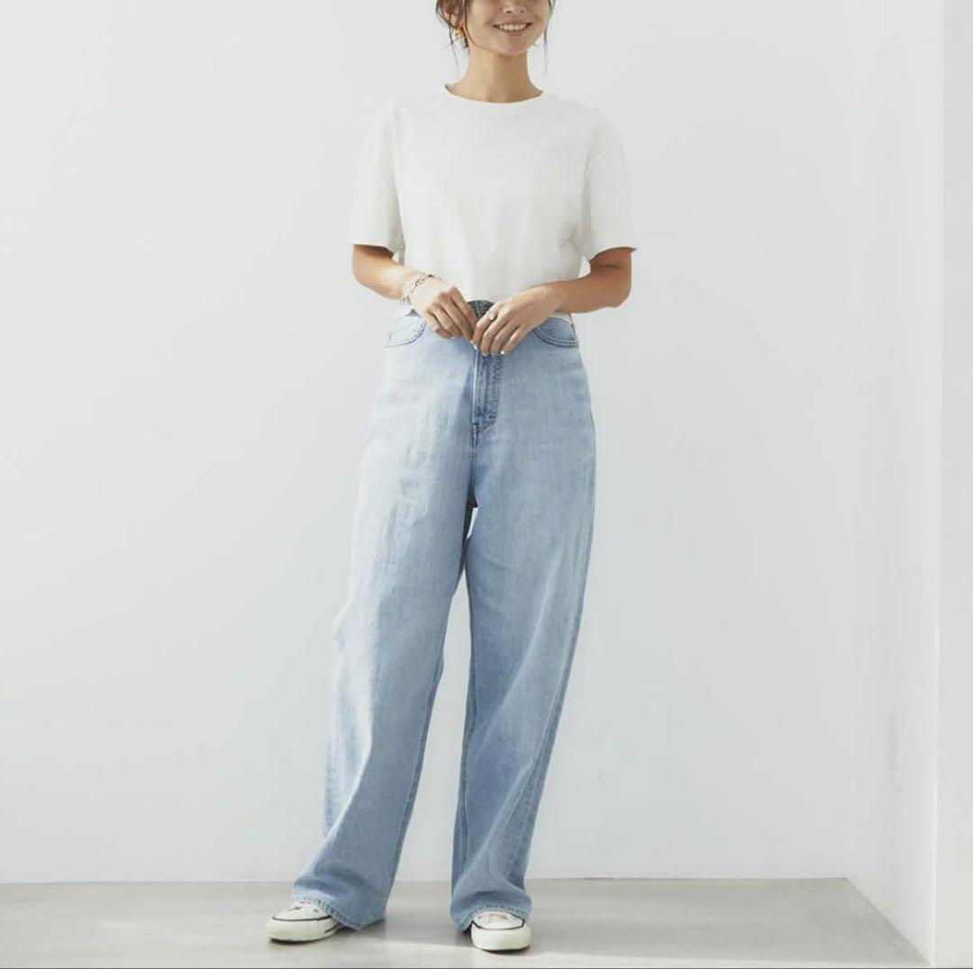 #YANUK #ヤヌーク #Joan #デニムパンツ #ジーンズ #ワイドストレート #ライトブルーデニム #春夏コーデ #大人カジュアル #ハイウエストデニム #メルカリ出品中