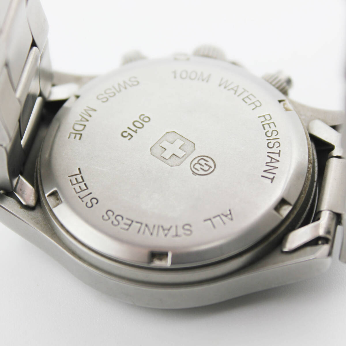 W250806-25 SWISS MILITARY スイス ミリタリー 9015 メンズ腕時計 クォーツ クロノグラフ デイト ジャンク 文字盤ブラック