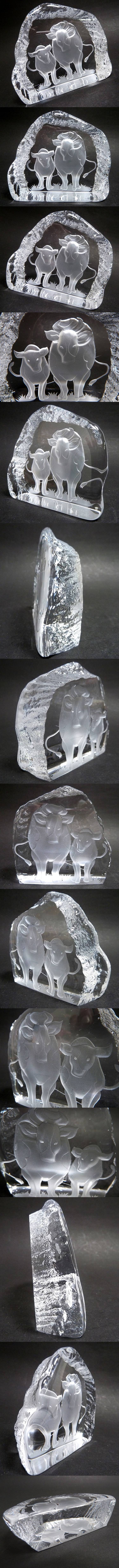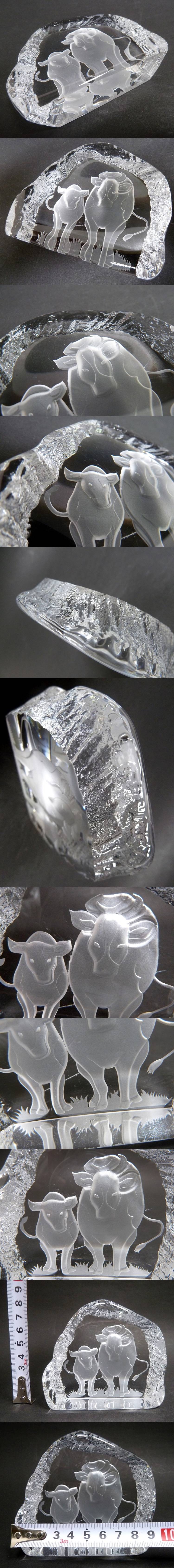 (☆BM)ガラス ペーパーウェイト/オブジェ 横幅9.5㎝ 400g 牛 親子 子牛 夫婦 カウ クリスタルガラス 置物 干支 丑年 飾り
