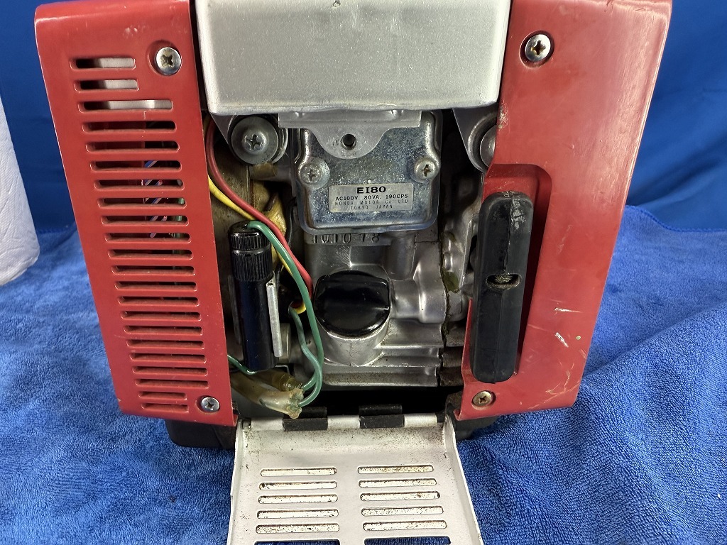 いらっしゃいませ~お客様~(#^.^#) ご覧いただき有難う御座います お時間許す限りごゆっくりご覧ください 最近非常に残念なことに説明文・注意事項・発送詳細を読まずに質問や入札が多発しています。 説明文などに記載されてる事を質問される様な方は迷わずブラックリストに入れちゃいますので 説明文はちゃんと読んでご理解の上ご検討ご入札お願いします。 説明文に有ることを質問されましても回答しませんのでご了承下さい。 直接引き取り(土日)もOK 出品地は三重県亀山市です ♪今回の出品はHONDA GENERATOR EI80 ホンダ 小型発電機 超希少 ジャンク♪ ★知人の倉庫で眠っていた物を譲り受けました ★リコイルスターターもスムースに引けました圧縮も確認できましたが 始動しませんでしたので整備前提のためジャンクとしてお願いします ★年式を考えると非常に綺麗な状態で保存されいると思います ★ほぼ使われずに保管されてたらしくオイルも非常に綺麗でマフラー出口もほぼ汚れてないようにみえます ★ホンダポータブル発電機EI80 ★製造年は1966年ころから製造 ★4ストロークガソリンエンジン21.2cc ★自動チョークキャブレター ガバナー付きなので安定しています アクセル開度つまみで50Hzも可能です ★4000rpm 満タン0.5Lで4時間運転 ★100V-80W 2個口コンセント ★質量8kg ★世界最小 4ストロークエンジン発電機 ■写真の物が全てです写真の物以外は御座いません (掲載写真に商品以外の物が映り込んでる場合も御座いますが常識の範囲でご判断下さいますようお願いします) ●あくまでも中古品ですので神経質な方は新品をおススメします ■当方プロショップではありませんので、行き届いたメンテやクリーニングをお求めの方は入札をご遠慮ください ●輸送による破損、故障などは責任をとれませんのでご了承ください ■個人出品となりますので、消費税・梱包手数料などは一切頂きません落札価格のみとなります、ご安心ください ※※領収書が必要な場合はかんたん決済でコンビニ支払いを行うと発行されますので活用下さい |