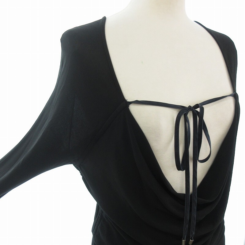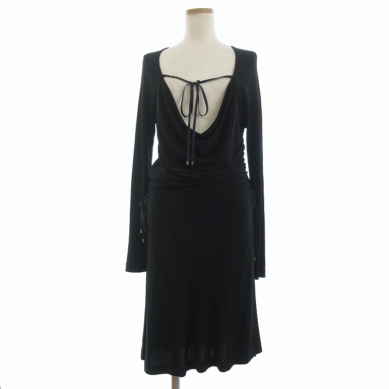 スポーツマックス マックスマーラ SPORT MAX ワンピース ドレス ドレープ 長袖 ひざ丈 リボン L 黒 ブラック レディース