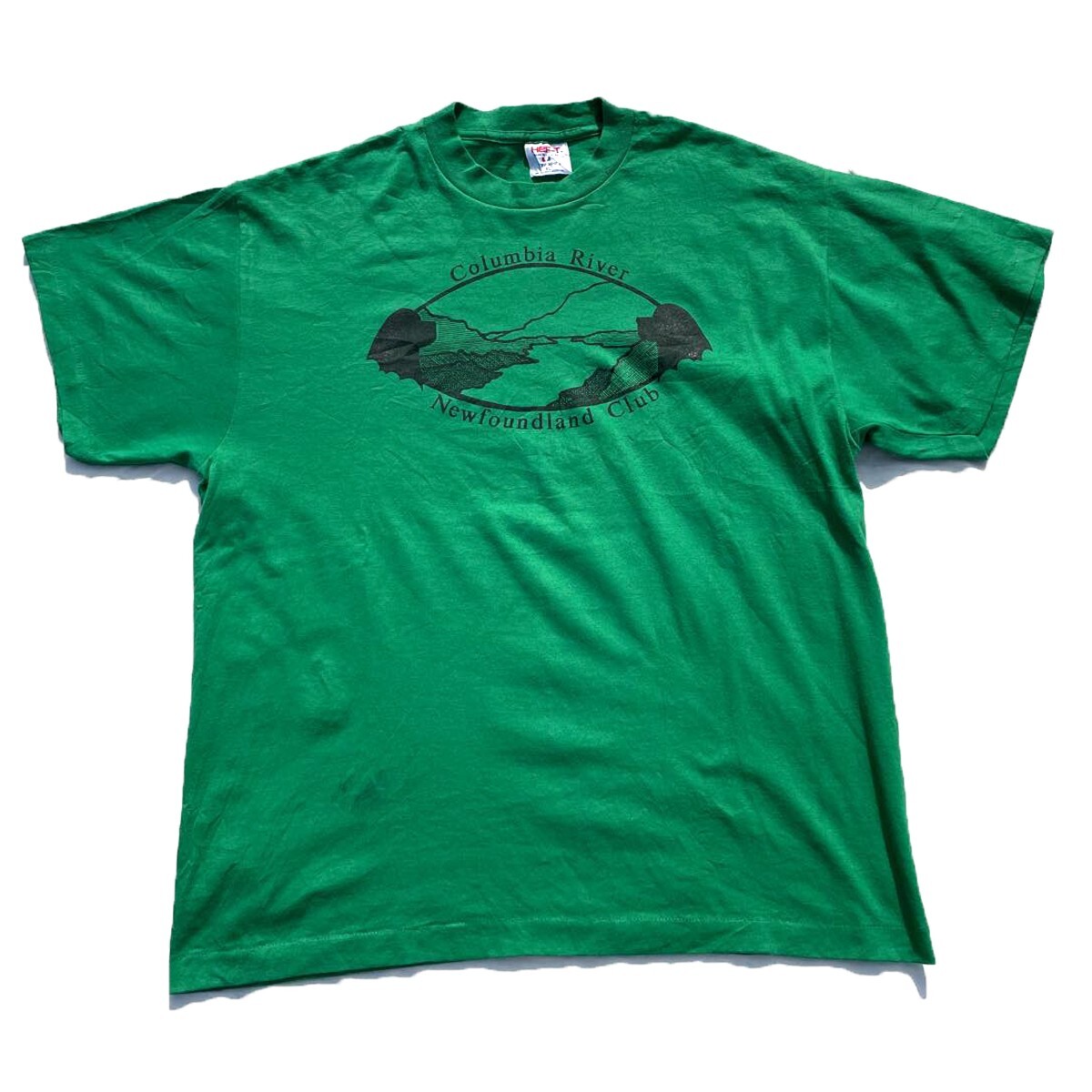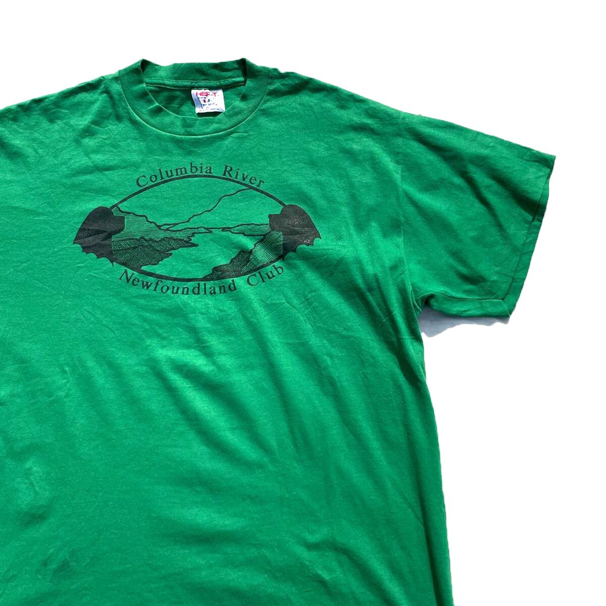 スーベニア! 90s USA製 Tee Jays ヴィンテージ Columbia River Newfoundland Club 犬 プリント 半袖 Tシャツ グリーン 緑 XL メンズ 希少