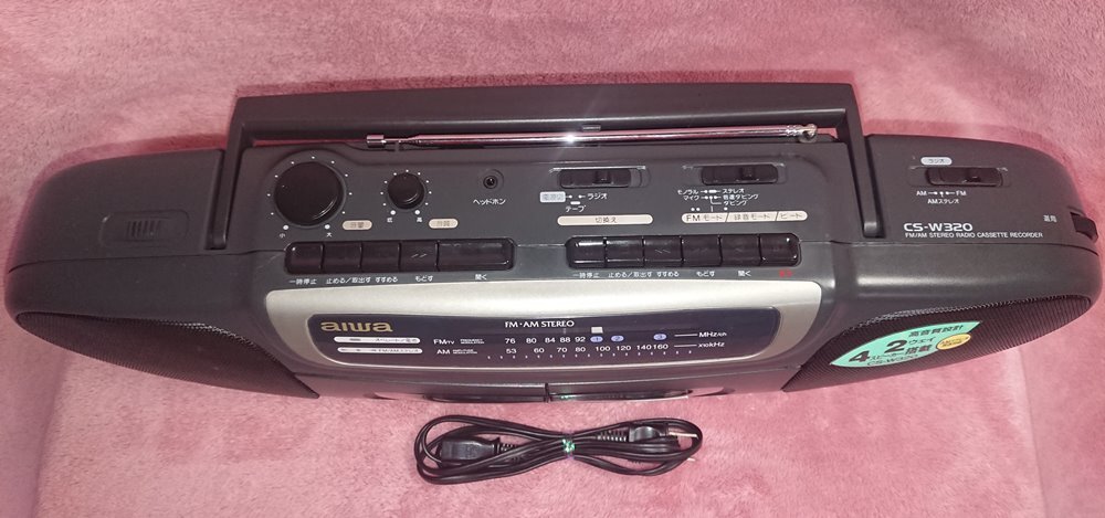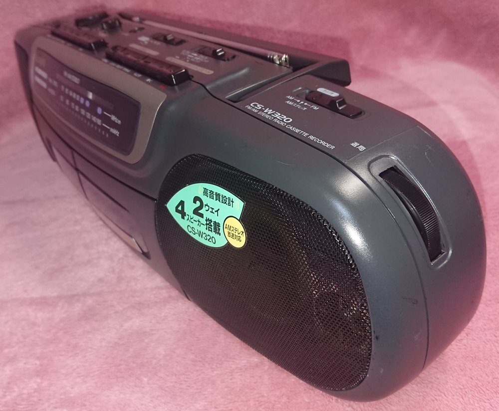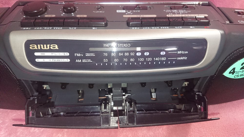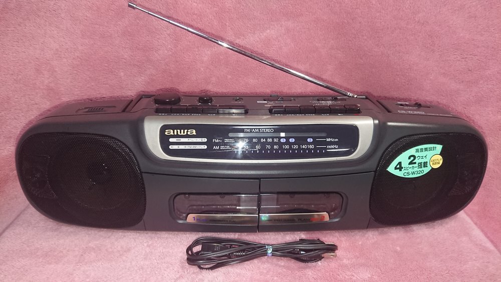 ◆aiwa【Wラジカセ CS-W320】1995年★駆動ベルト交換済★動作品★録再可能/2way 4スピーカー/AM FMステレオ/トンコン付★◆