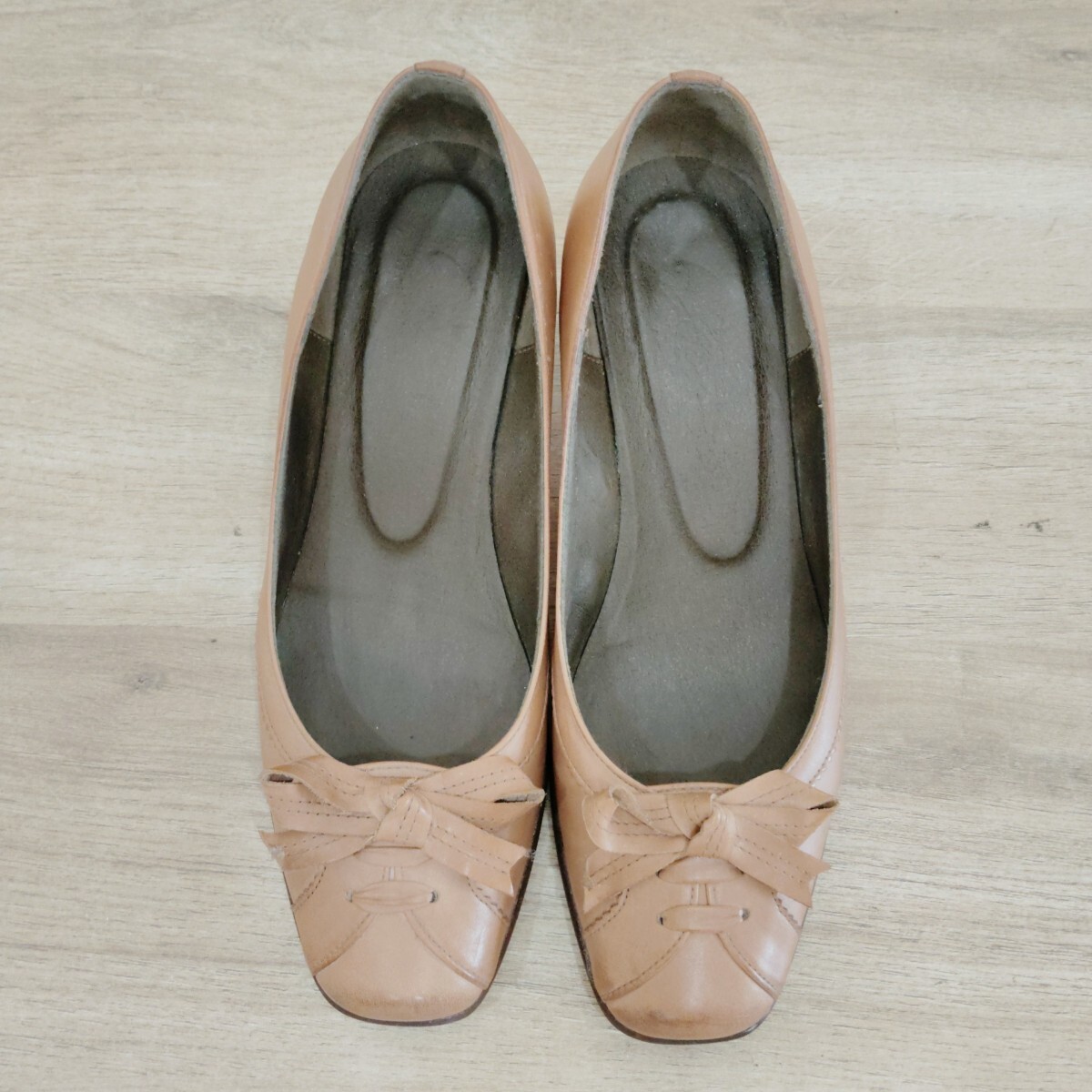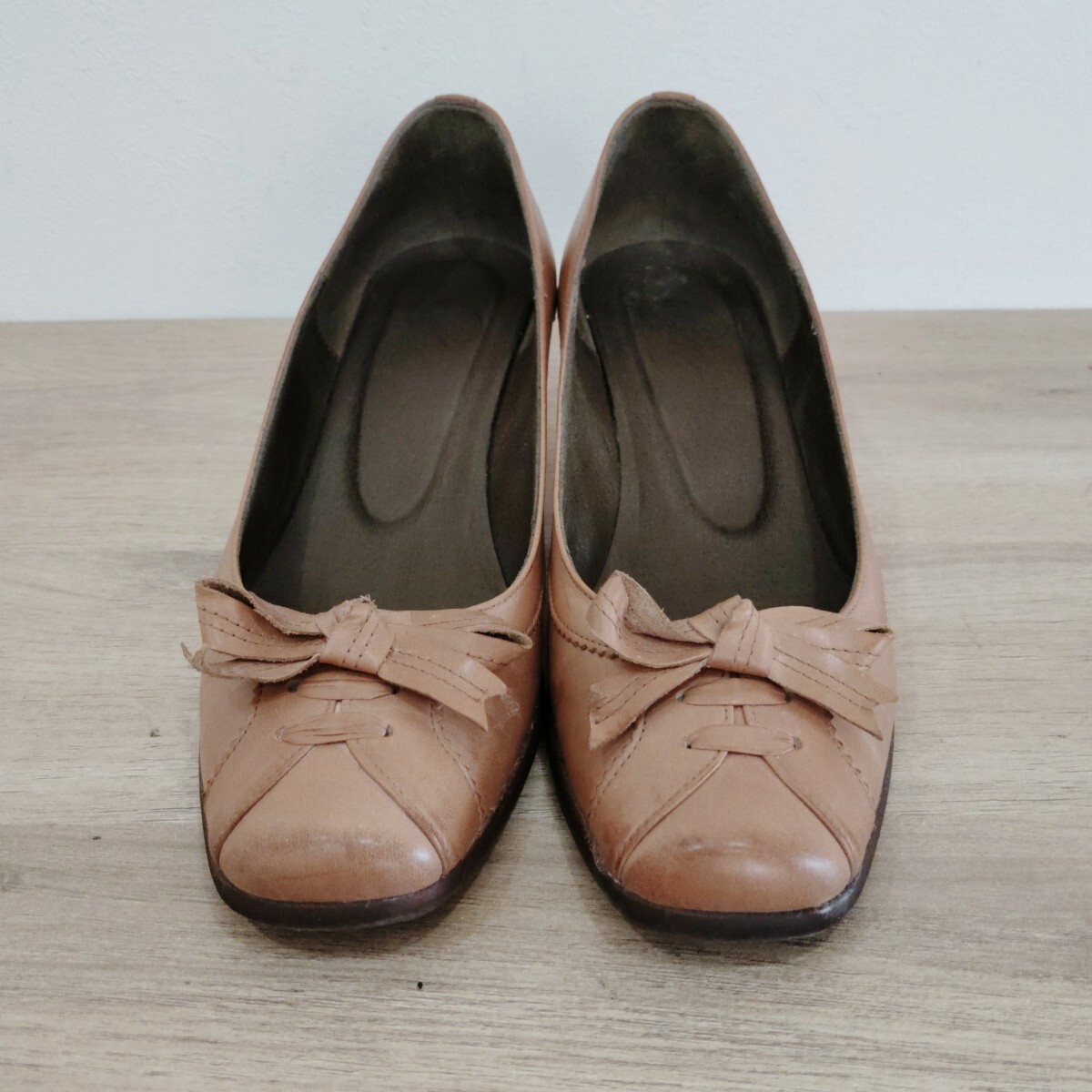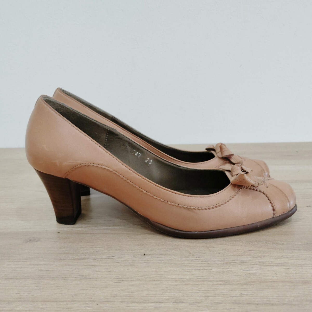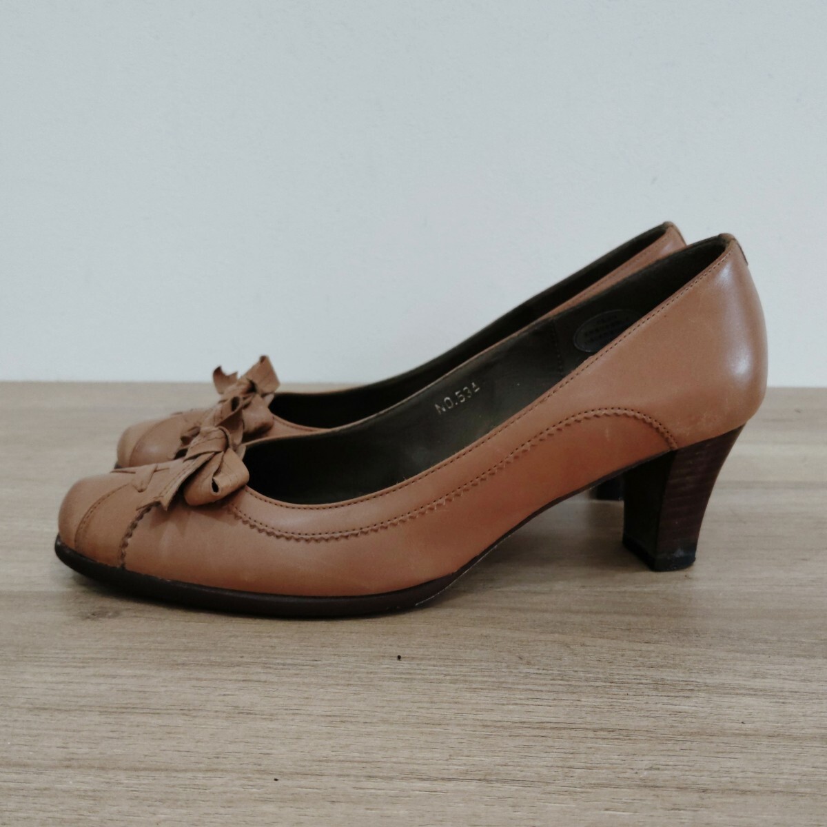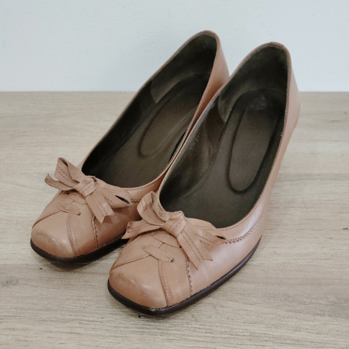 FLOAT パンプス ヒール 23cm リボン ブラウン レディース