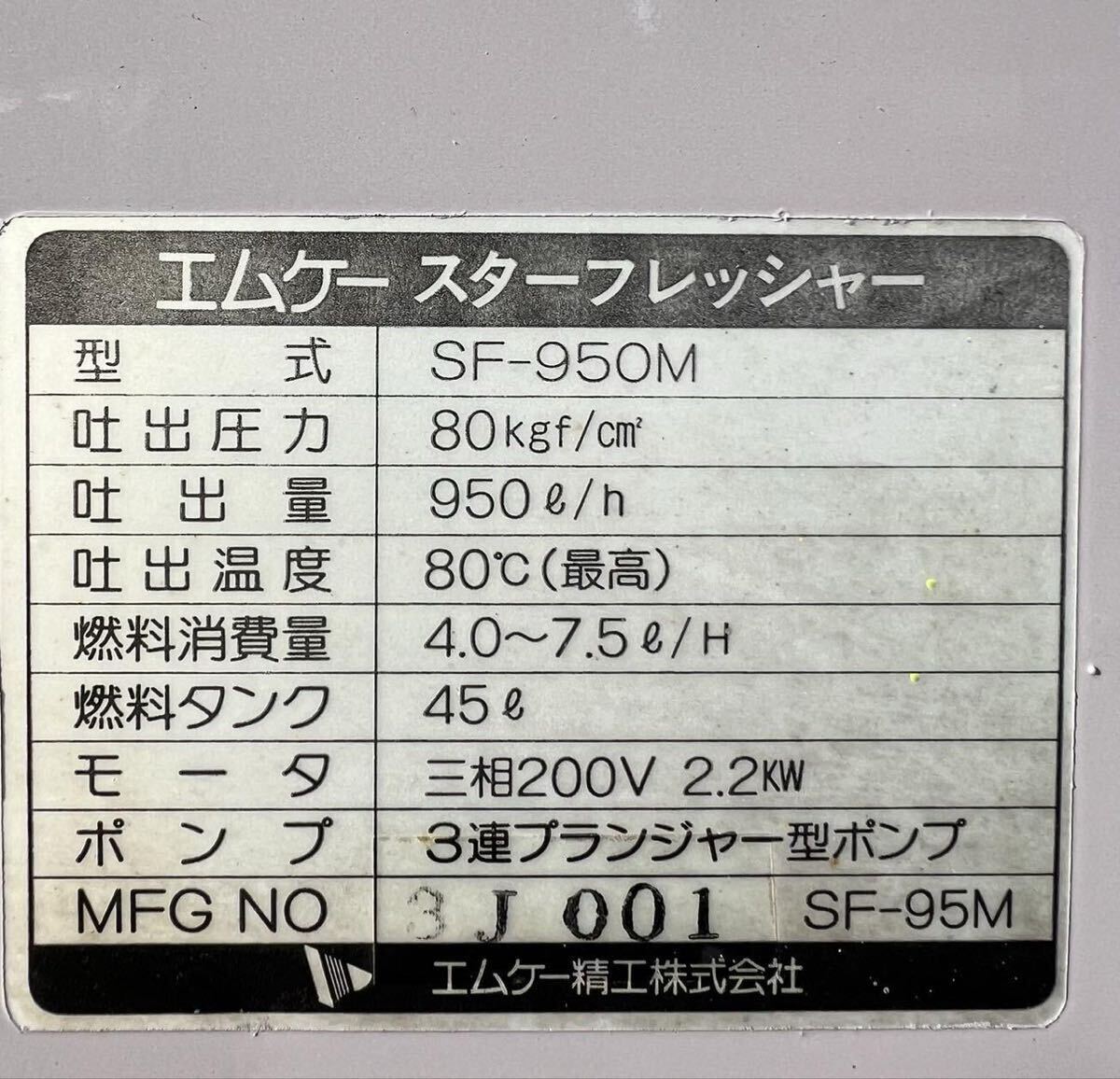 中古。エムケー精工 エアコンフレッシャー SFー950M 高圧温水洗浄機 動作確認済み 。