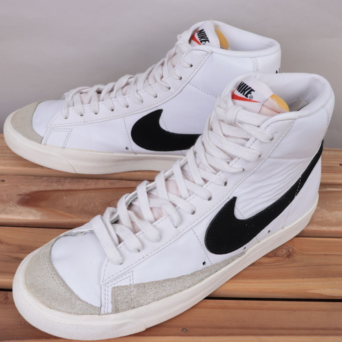 z912 ナイキ ブレーザーミッドビンテージ US8.5 26.5cm/白 ホワイト 黒 ベージュ NIKE BLAZER MID 77 ブレザー メンズ スニーカー 中古