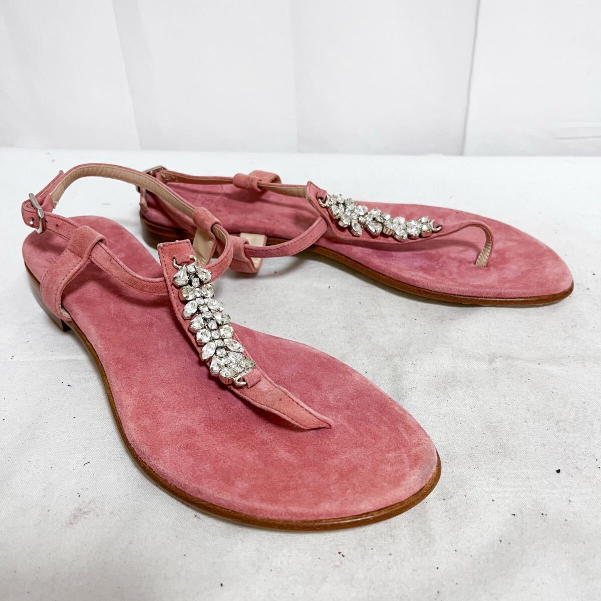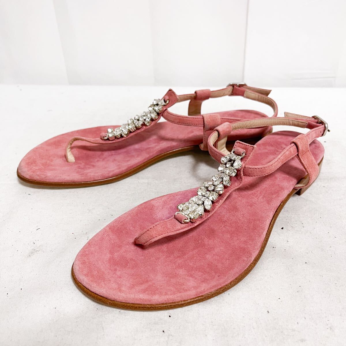 和812★① il Sandalo of Capri イルサンダロオブカプリ トングサンダル ストラップ スエードレザー ビジュー 37 ピンク レディース