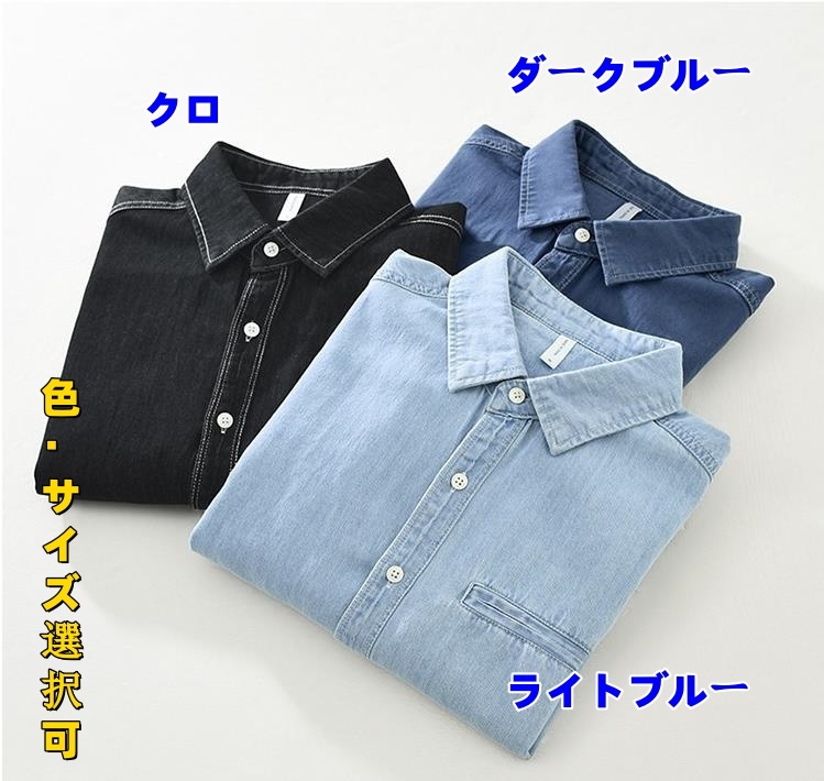 デニム長袖シャツ 新品★メンズ シャツジャケット シャツ トップス ウエスタンシャツ カジュアルシャツ【M7775】ダークブルー M
